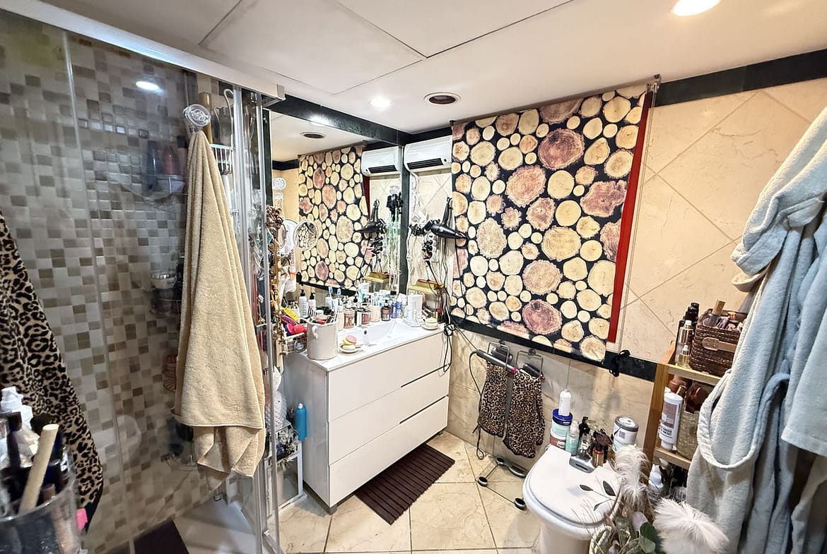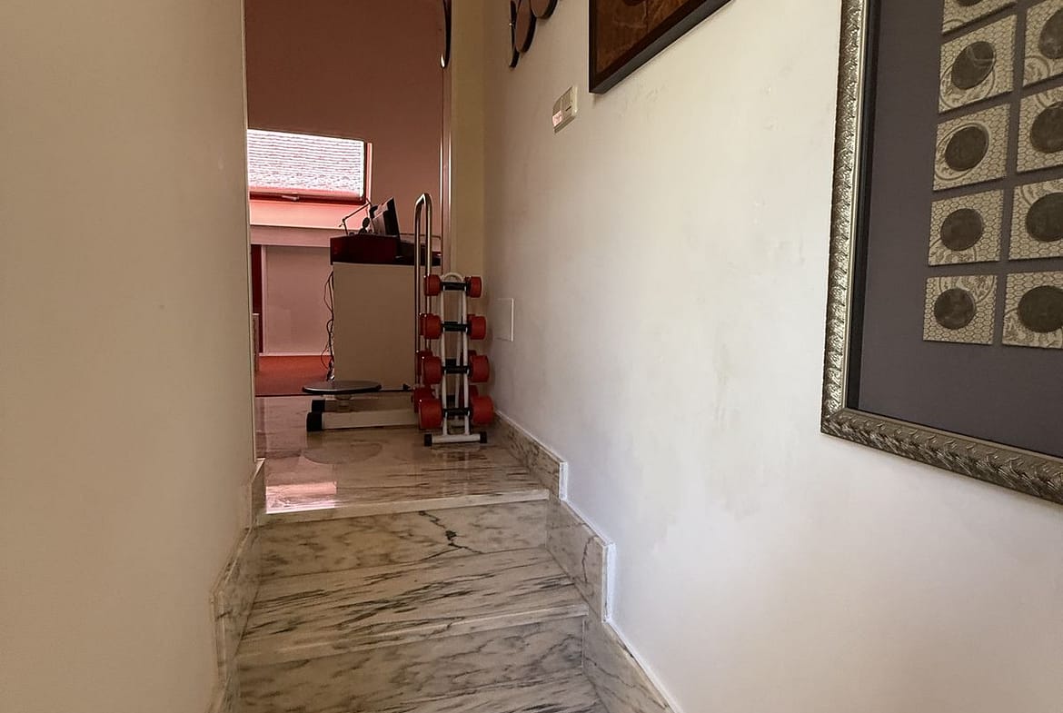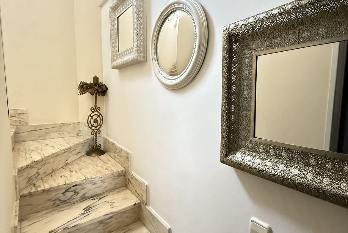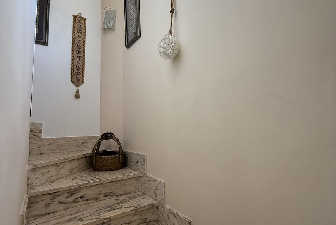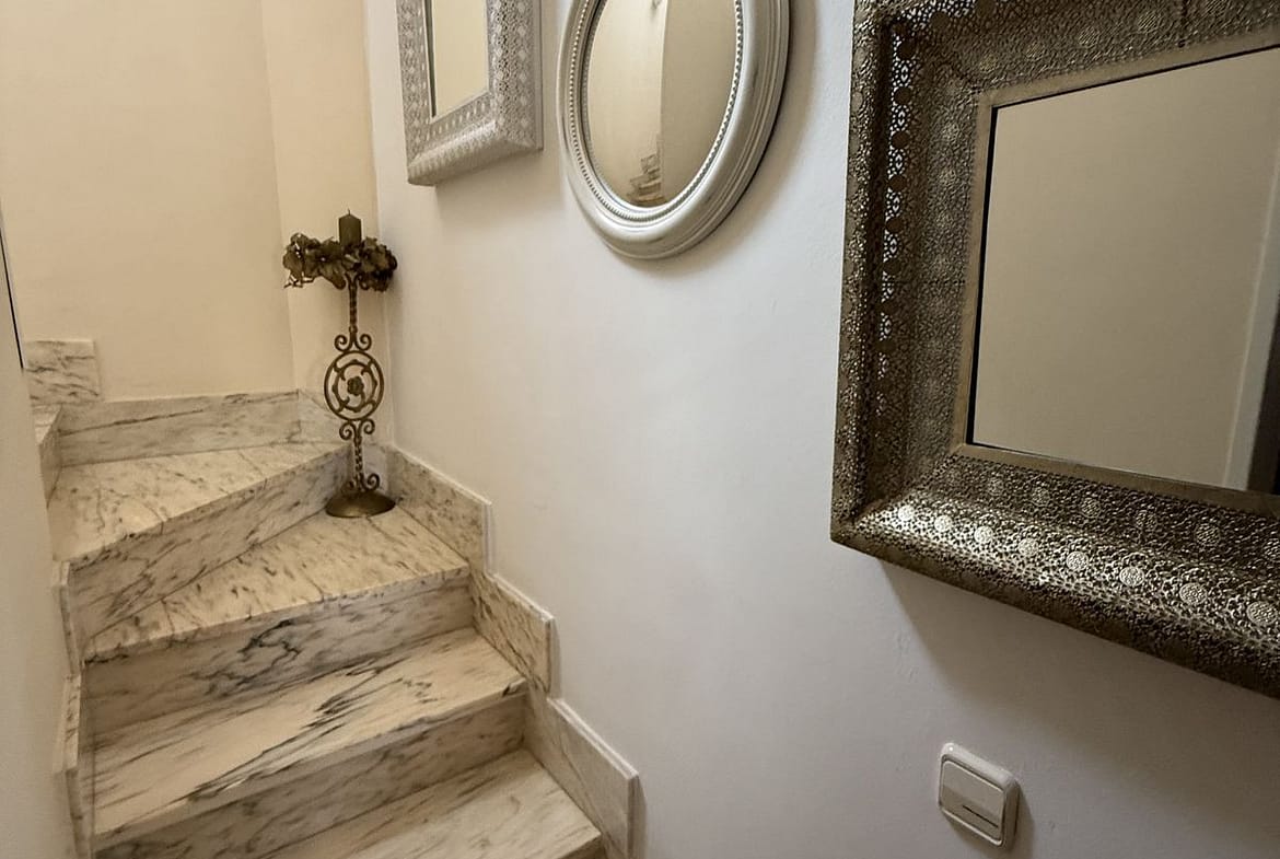 Upstairs from the main level there are another two bedrooms with bathrooms and each one with a terrace. From a larger one you have partial view of the Mediterranean Sea