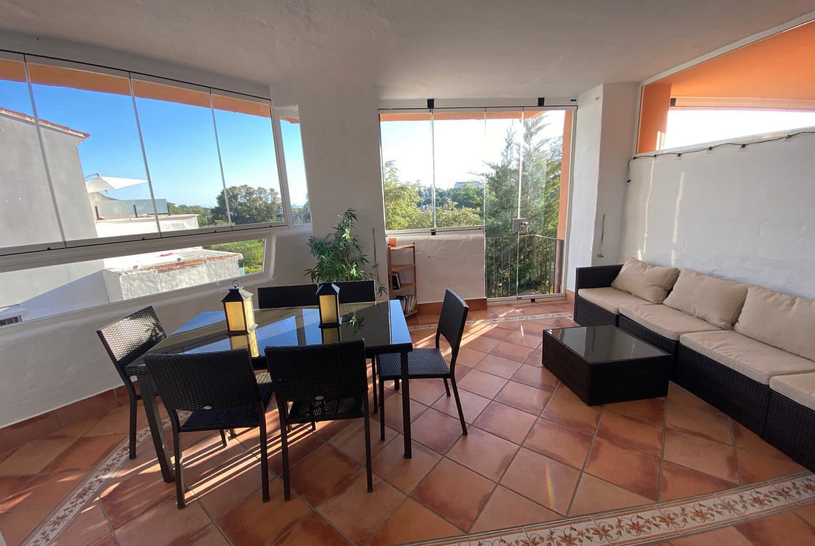 Magnificent corner townhouse located in an enclosed area, facing south, in Cabopino neighbourhood just 200 m from Doss restaurant and a stroll 15 minutes walking to Cabopino beach. It consists of five bedrooms, three located on the 1st floor with two bathrooms (1 en suite) and in the basement two bedrooms, 1 bathroom, living room and separate kitchenette, which provides more confort and privacy to the guests. Large solarium to enjoy the sun and dinners with friends, al fresco.