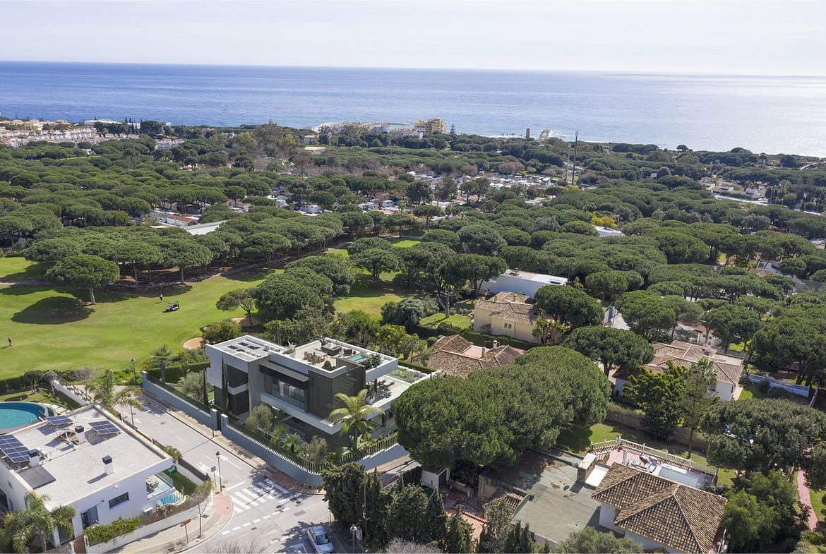 This spectacular villa is currently under construction in the Artola Alta residential area, right on the golf course and with stunning views.