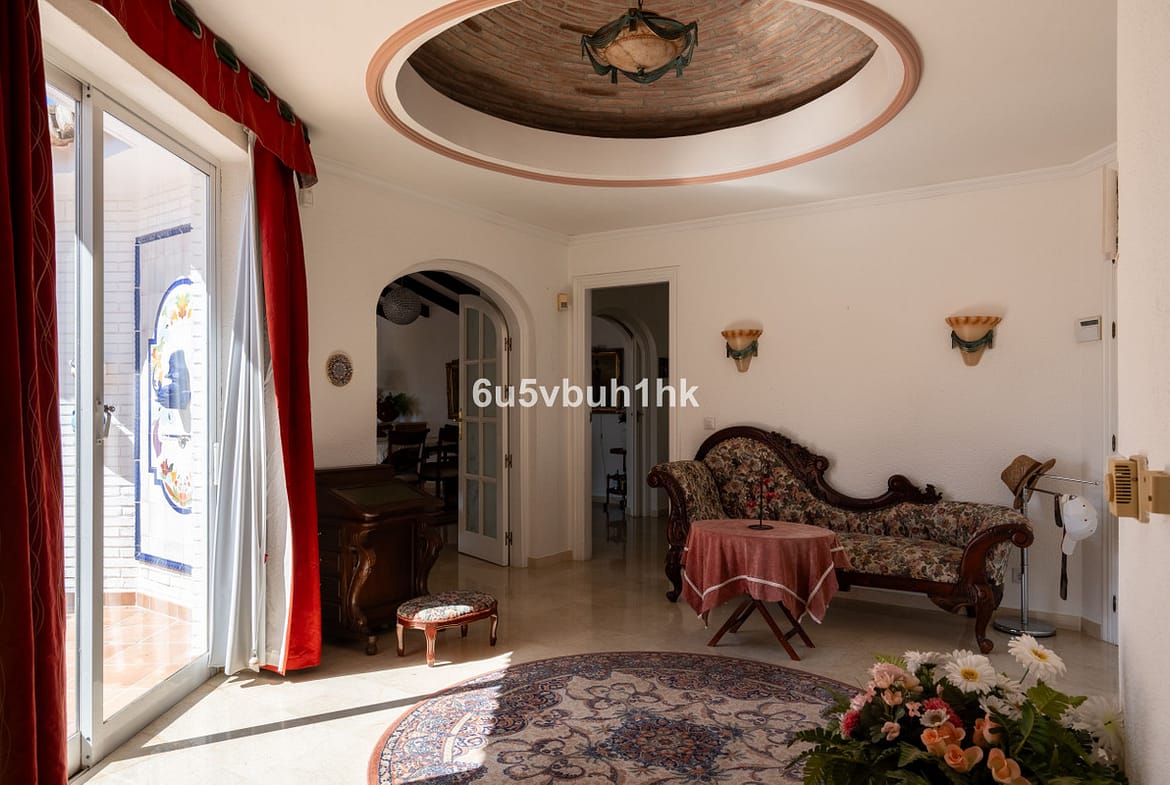 Hidden among palm trees and mature gardens in the established residential area of Sitio de Calahonda, this beautiful Andalusian villa captures the essence of traditional Mediterranean living. From the moment you arrive through the private gated entrance and stone driveway, the property reveals the charm and elegance that define classic homes on the Costa del Sol.