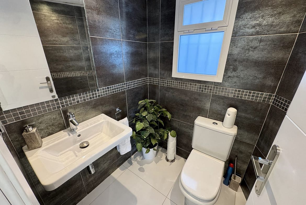 UPPER LEVEL: You have a nice size landing with large picture window and doors to 3 double bedrooms and a second luxury shower-room. The Master bedroom has its own walk in wardrobe and en-suite luxury shower-room and all three double bedrooms upstairs have fitted wardrobes and patio doors leading out to the main upstairs south-facing terrace, again all upstairs bedrooms and terrace offer panoramic green hillside and sea views.
