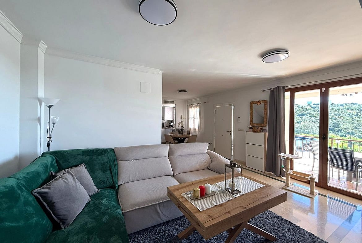 Bright and spacious living-dining area with direct access to the main terrace, perfect for enjoying the climate and the sea views.