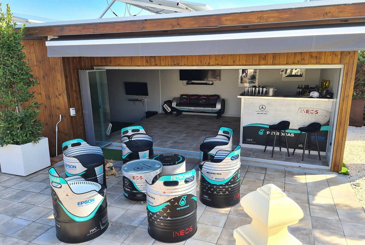 Outside, the paved garden has a large swimming pool, pergola with outdoor jacuzzi, barbecue area & storage room. There is also an impressive games room with its own bar, kitchen and golf simulator, perfect for entertaining and sports events.