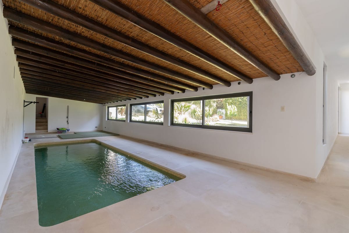 The property was completely renovated several years ago, distributed in two heights, it has a total of five bedrooms. The master bedroom stands out for its large size, with high ceilings, a large dressing room and a glass-enclosed shower area. It also has a spacious living room with fireplace next to a large kitchen and an indoor heated pool.