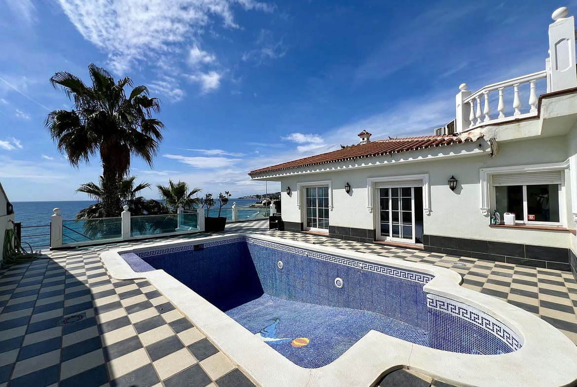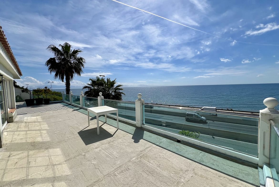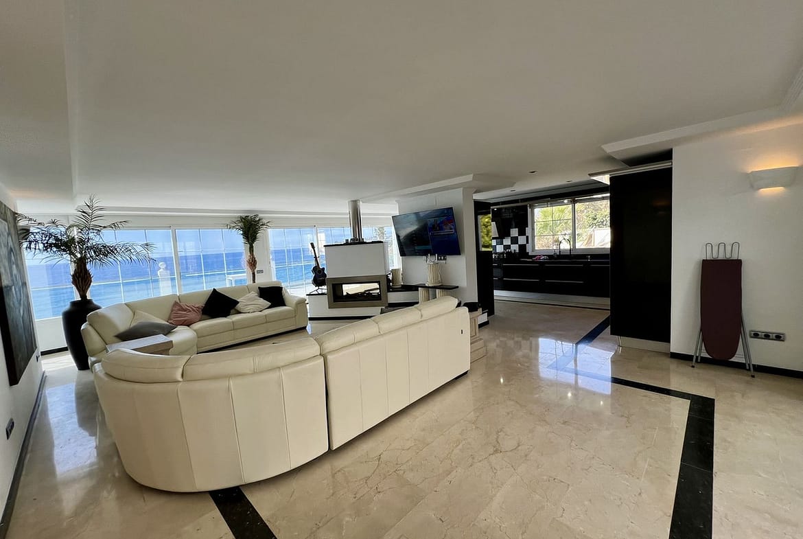 This magnificent villa offers the epitome of coastal living, situated just 15 meters from the pristine beach. Boasting panoramic sea views, this recently refurbished property features two separate living spaces, providing versatility and ample room for relaxation and entertainment.