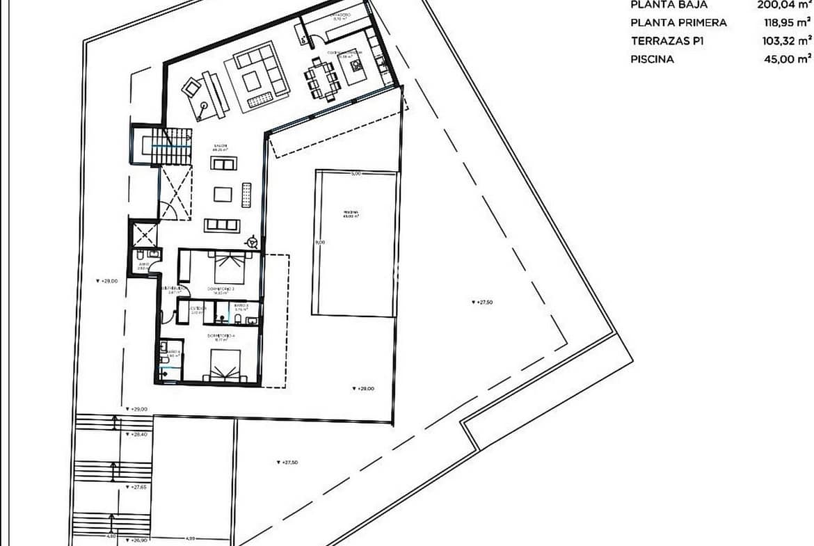 First floor with two large en-suite bedrooms, study and another full bathroom. In addition, a terrace of over 100 m² with spectacular sea and mountain views. Finally, the large basement of over 250 m² houses a spacious car park for several vehicles, a machinery room and a huge area that could be used to create a guest apartment, cinema, wine cellar, games room or whatever the new owner desires.