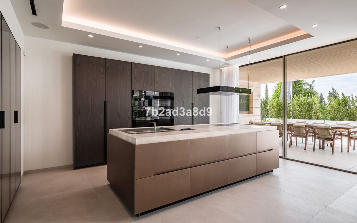 Enjoying a prime corner plot with its own cul de sac entrance, this beautiful, new villa boasts spectacular design and finishing. The features include a total of over 900m2 of build over 3 floors plus a glorious rooftop solarium. In addition to the exceptional living area, the property also has state of the art domotics, underfloor heating a gymnasium and spa and its own wine cellar. Interior parking for 3 cars and car ports for 2 more add to the privacy and security. The villa has just been completed and is ready to move in