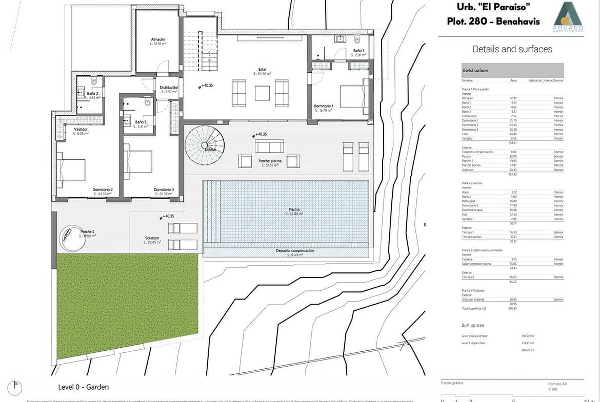 Offering approximately 404 m² of built area and more than 600 m² of total usable space, including terraces, porches and solarium, the layout has been thoughtfully arranged to balance comfort, privacy and entertaining.
