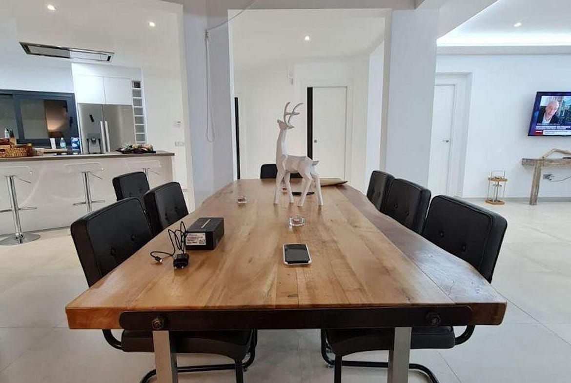The villa is fully equipped with optic fibre internet, satellite TV, and a comprehensive interior and exterior alarm system for peace of mind.