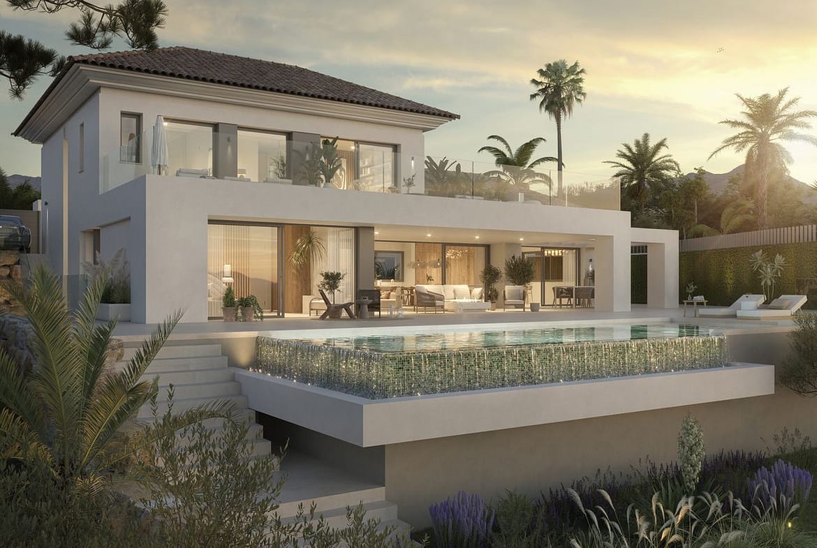 Nestled in the green hills, you will find Casa Lugano, a luxurious and elegant newly built villa in Elviria, one of the most sought-after areas in Marbella East.