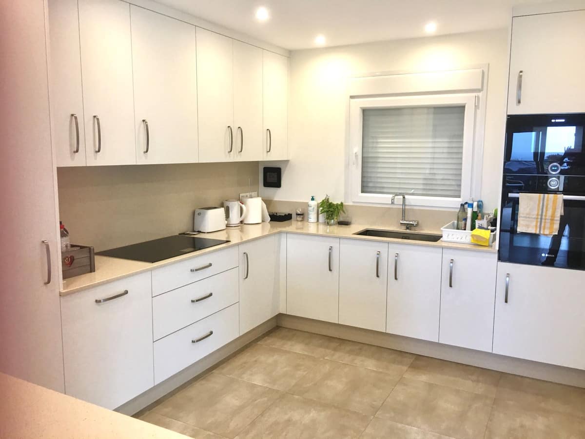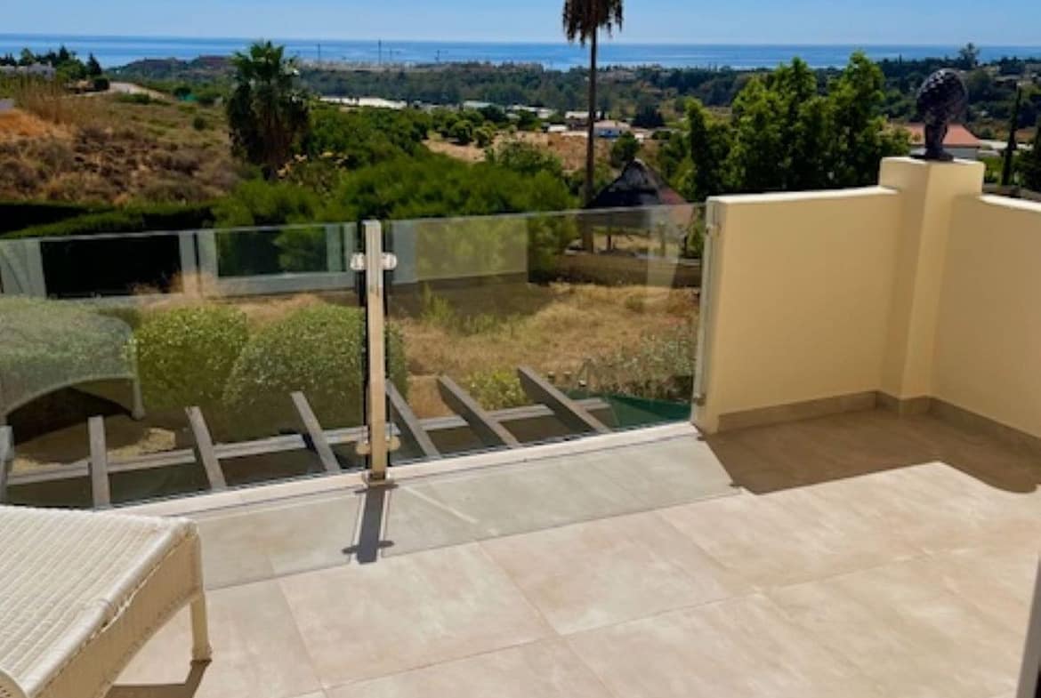 Below the house, there is a separate apartment of 108.22M2, featuring a large open plan kitchen, a large shower room, an open-plan bedroom and living area, walk in wardrobe, and plenty of extra built in storage. The apartment downstairs has its own entrance. You have bi-folding doors onto a large private terrace. The property doesn't have a pool, but there is a license for a pool, so you do not need to apply for one. The large store room / double garage at the front of the house has been enclosed, but the wall can be opened up very easily. At the entrance to the house you have electric gates and parking for 3 to 4 cars, the garden has some fruit trees and large hedges which gives you total privacy, the garden has been left for someone to put their own touch on to make it more personal especially if you want to have a pool, it is a blank canvas, super house and renovated throughout, 6 minute drive to Estepona port, lovely quiet location with super views to Gibraltar and the countryside.
