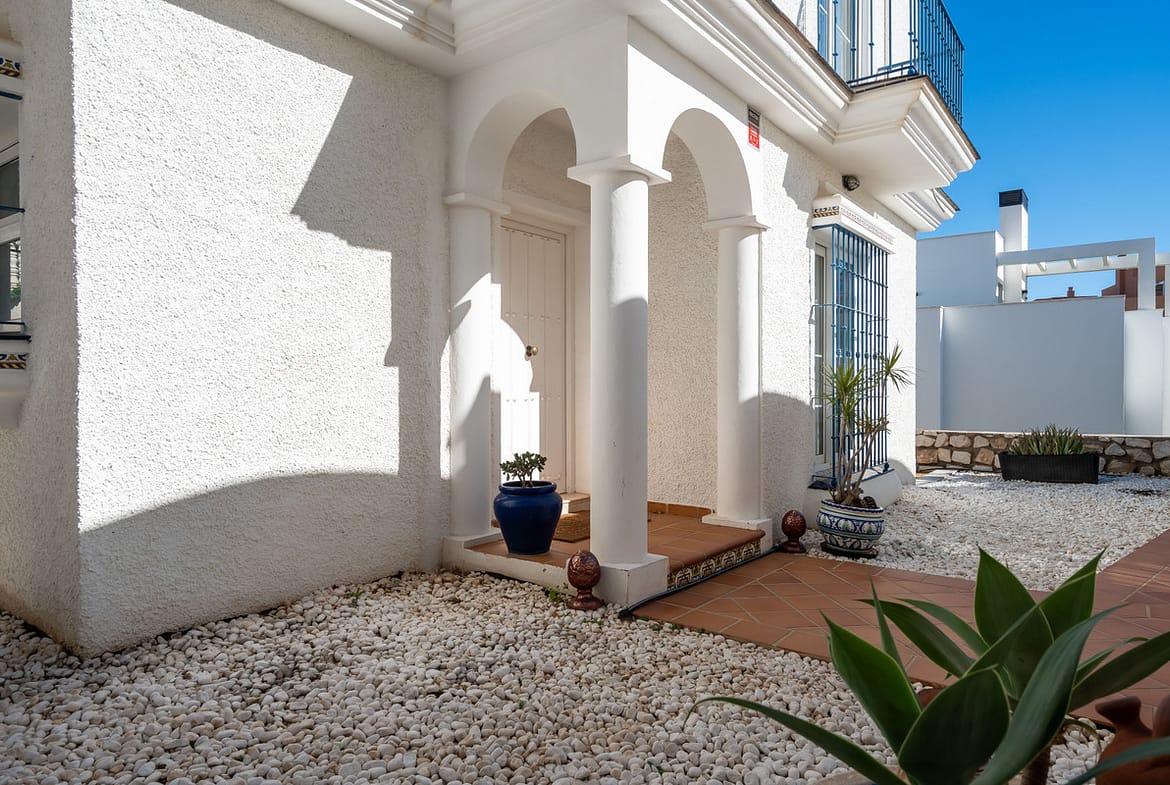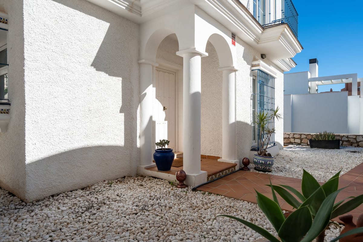 On the second floor, three elegant bedrooms and three contemporary bathrooms provide a serene retreat. The master suite is a standout, boasting panoramic views of the sea, the castle, and Fuengirola, with direct access to a private terrace and an idyllic spot to enjoy the scenery.