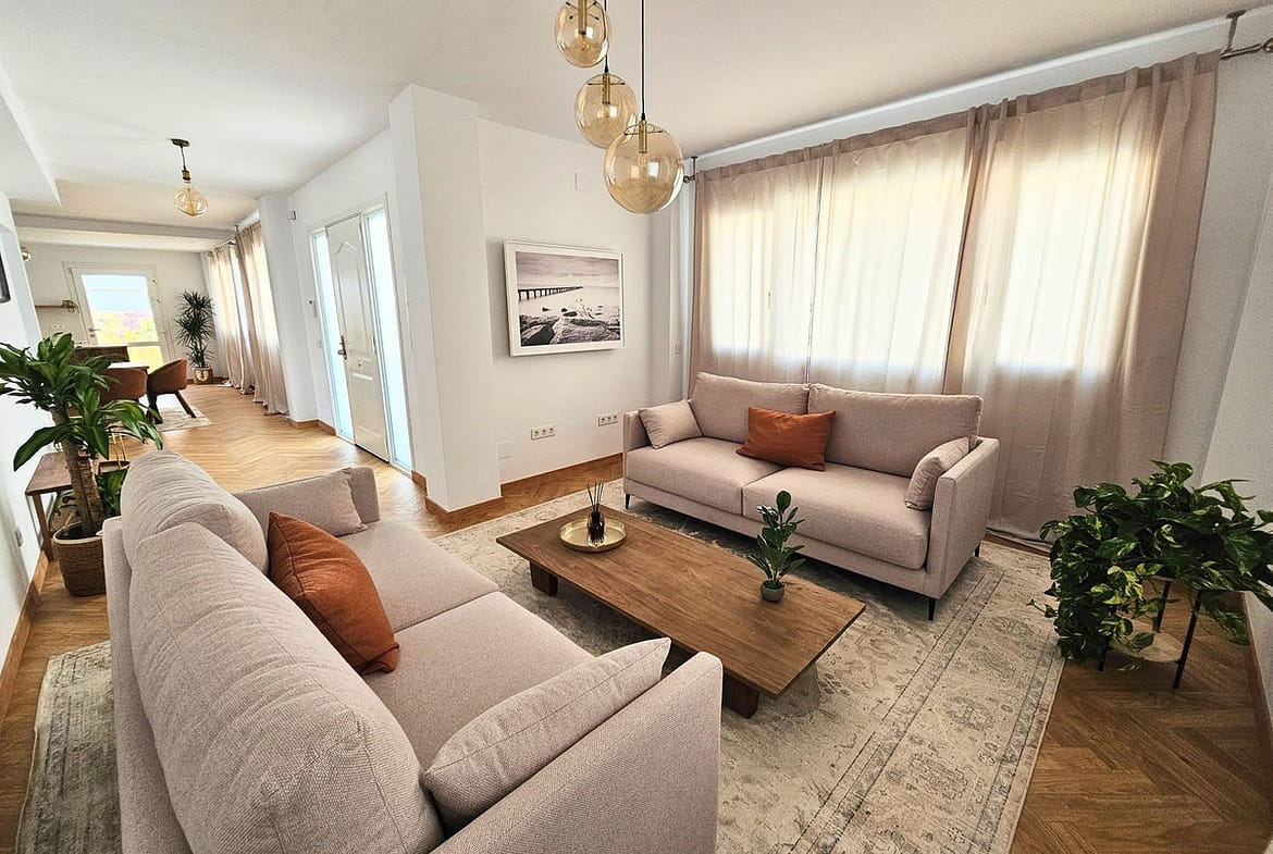 We are pleased to present this high-standard residence in a prime location, offering the perfect blend of comfort, style, and exceptional quality. This stunning property is just 50 metres from the golf course, 350 metres from the beach, and 50 metres from a vibrant gastronomic area. Every detail has been carefully selected to provide maximum comfort and elegance.