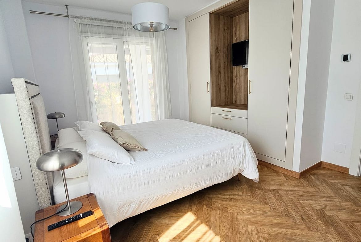 – **Windows and Doors:** PVC double-glazed thermal windows with wood-effect exterior and white interior, complemented by automatic shutters. Interior doors are custom-made from solid wood, with stainless steel detailing, adding a touch of sophistication to every corner of the house.