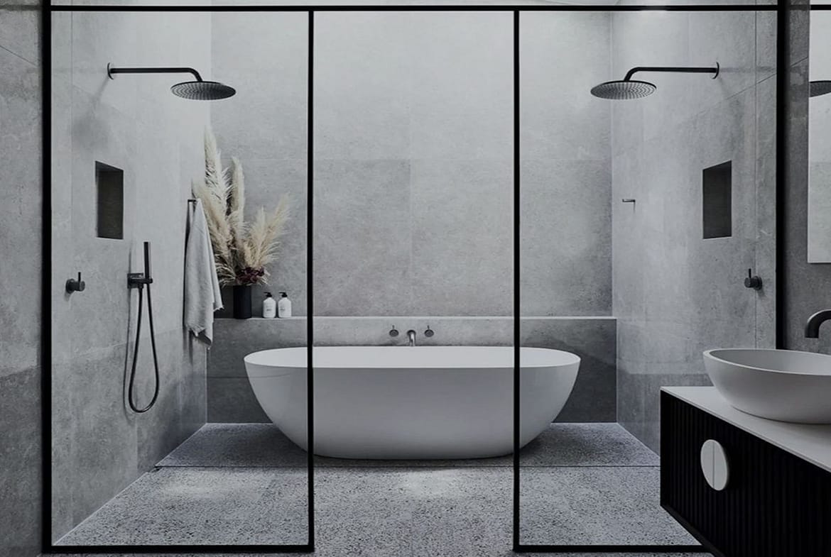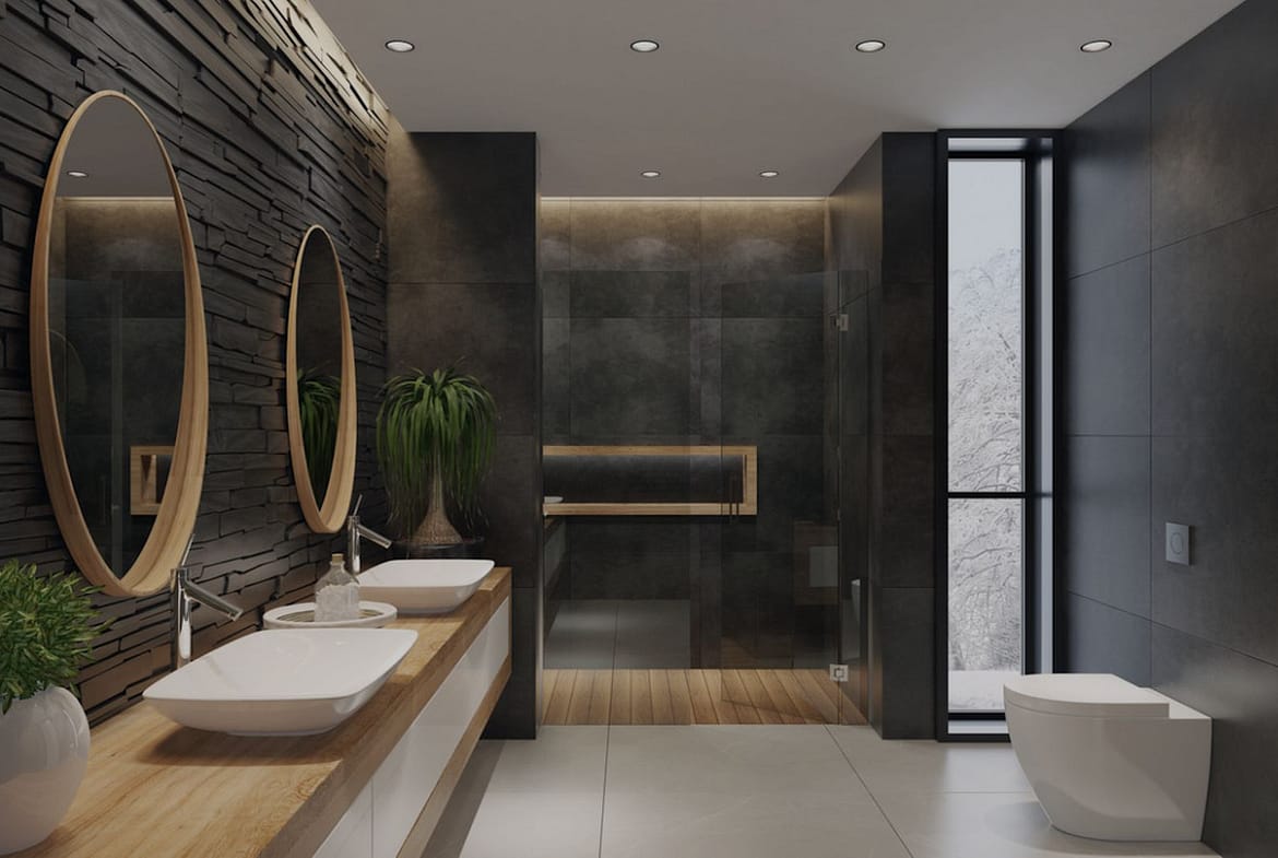 – Bathroom walls covered with COVERLAM wall plates