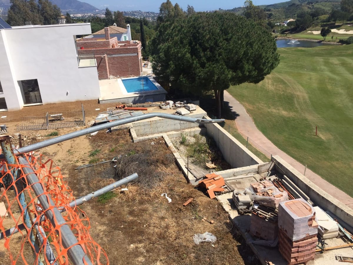 INVESTMENT OPPORTUNITY. This unfinished golf front villa overlooking the fairways and lake of hole Nº6 of Asia course in La Cala Golf resort, is an excellent opportunity. Under construction, for sale as the villa is with an estimate cost to complete the construction of about 600.000€. The villa will welcome you with an entrance hall giving access to large living and dining room leading to a sunny terrace with wonderful golf views and with access to the pool area, very large open-plan large kitchen, 2 double bedrooms, 1 family bathroom + 1 guest toilet on the main floor. The top floor is home to the impressive master suite with vaulted ceiling, wall-to-wall bay-window, private terrace + balcony with commanding views, large en-suite bathroom with bath and walk-in-shower. The 160m2 of the lower floor offers a wide range of possibilities for converting it to suit your needs, such as 2 bedrooms, 1 bathroom, 1 gym or TV room, 1 laundry room,+ plenty of storage space… Large L shape infinity swimming-pool overlooking the fairways, platform prepared for a beautiful pool house, large space for landscaped garden. This could your perfect house. Contact us