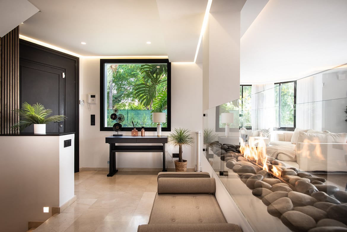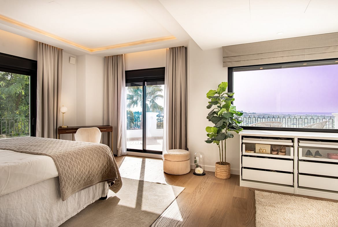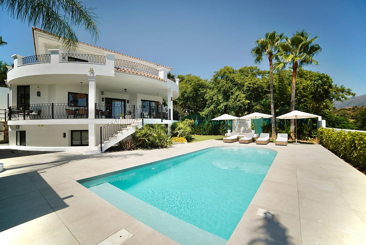 Nestled in the prestigious La Quinta area of Benahavis, this stunning 303-square-meter villa (386 sqm including terraces) sits on an expansive 765-square-meter plot, offering an unparalleled blend of luxury living and natural beauty. With its coveted south-facing orientation, the property is bathed in natural light throughout the day while providing breathtaking panoramic views of the sea, golf course, and surrounding mountains.