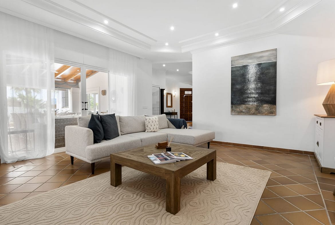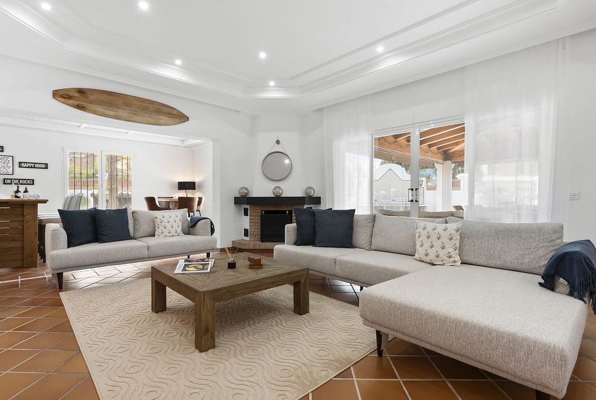 Nestled in the serene Las Chapas Playa, 300 meters from the sandy shores, awaits a stunning 5-bedroom, 6 bathroom villa. This idyllic property is conveniently situated just a 5-minute drive from Marbella Centre and a 40-minute journey from Malaga Airport, ensuring both accessibility and tranquility.