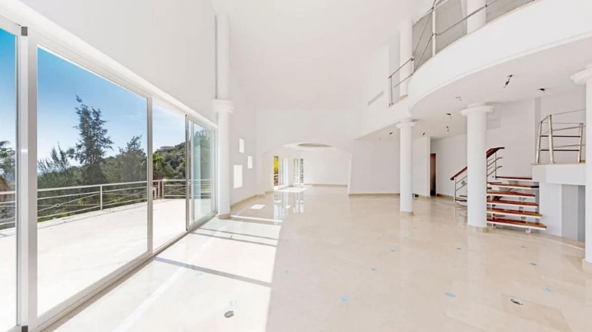 Detached house in the El Almendro Urbanization, Benahavís. It has a surface area of 919 m² distributed over 4 floors. The ground floor comprises a spacious living room, dining room, kitchen, access walkway to the hallway, 2 bedrooms with en-suite bathrooms, and 2 terraces. The upper floor, accessed from the street via the entrance porch, consists of an entrance hall, corridor, 1 bedroom with dressing room, 1 bathroom, and a terrace. The semi-basement level features a spacious garage with room for several vehicles, a games room, and two bedrooms with en-suite bathrooms. The basement level includes a bar area, dressing room, games room, and bathroom. The property sits on a 3,868 m² plot, which includes an entrance porch, parking area, and a large private garden with a swimming pool and jacuzzi, all with sea views. It comes equipped with built-in wardrobes, a fitted kitchen, a fireplace, and pre-installation for air conditioning. Located in a quiet residential area surrounded by several golf courses.