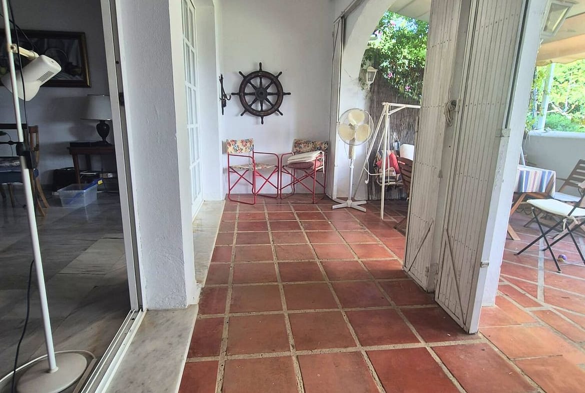 Upon entering the property, you are welcomed by a private terrace with a small storage area. Once inside, to the right there is a storage room, and to the left, a fully equipped independent kitchen with laundry area and a bathroom. Ahead, a large living room with fireplace invites you to enjoy cosy moments, opening onto a generous terrace and small porch that lead to the large communal garden, where, to the right, you’ll find direct access to the communal swimming pool.