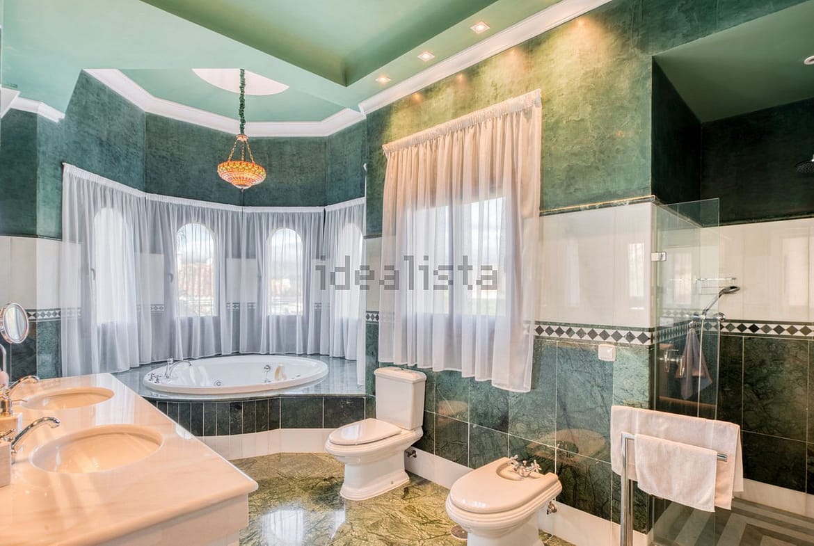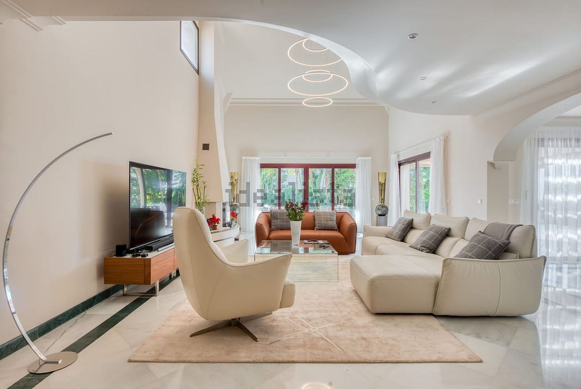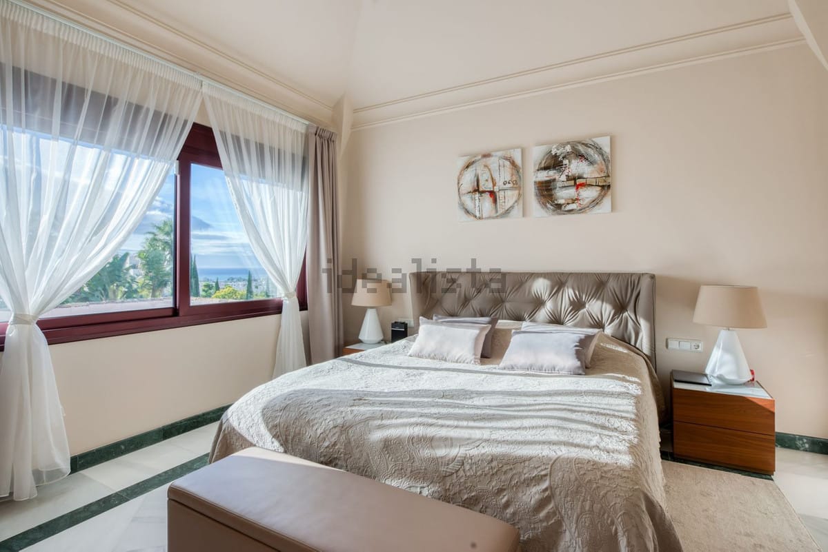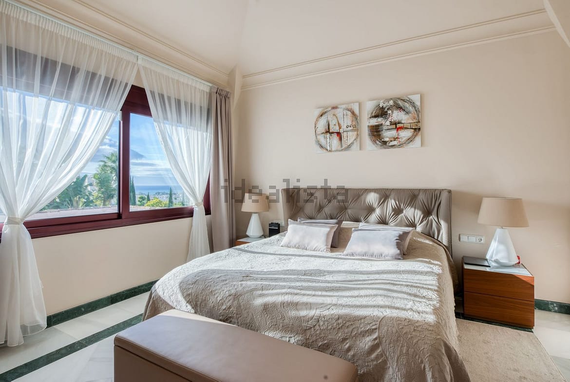 Elegant five bedroom luxury villa in Los Flamingos. This impeccably presented villa brings together a combination of facilities, a children's garden and a pool area. The villa has underfloor heating throughout the house, marble bathrooms and floors, an independent Airzone system for each room. Ground floor with entrance hall, large living room with fireplace and large terrace, kitchen with dining room, 2 bedrooms and 2 bathrooms and guest toilet. First floor with master bedroom with fantastic views, dressing room and bathroom. The basement has natural light and a separate entrance. It offers a living room with an open kitchen, 2 bedrooms, 1 shared bathroom and a laundry area. Large garage for 4 cars. The privileged location guarantees all the amenities, shops, restaurants, banks, 4-5 star hotels close at hand, golf courses, easy access to beaches, walks and play areas for children.