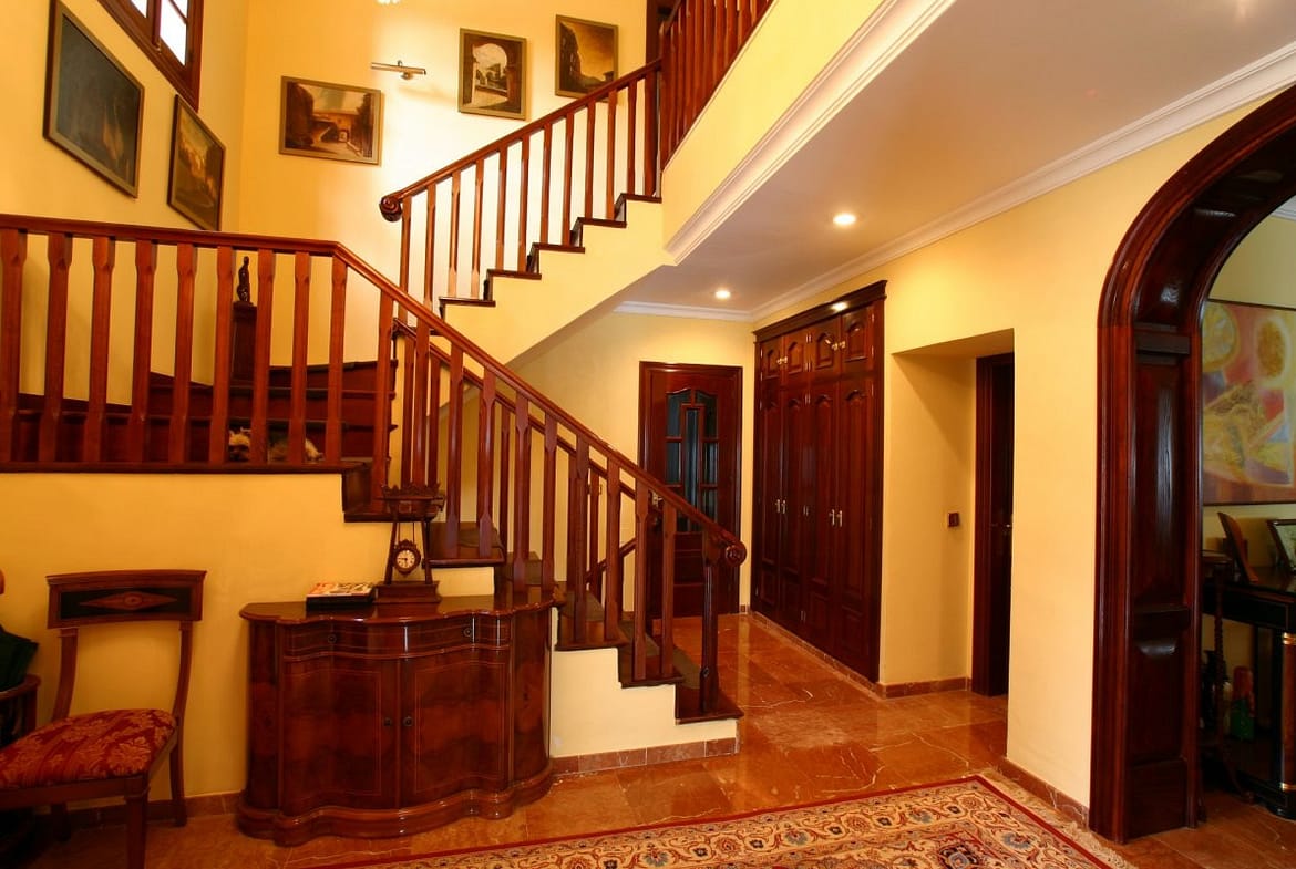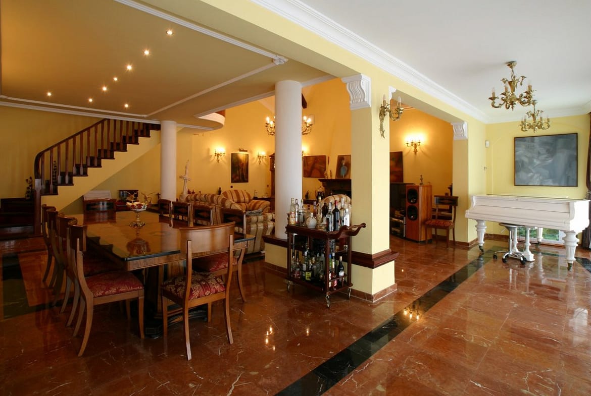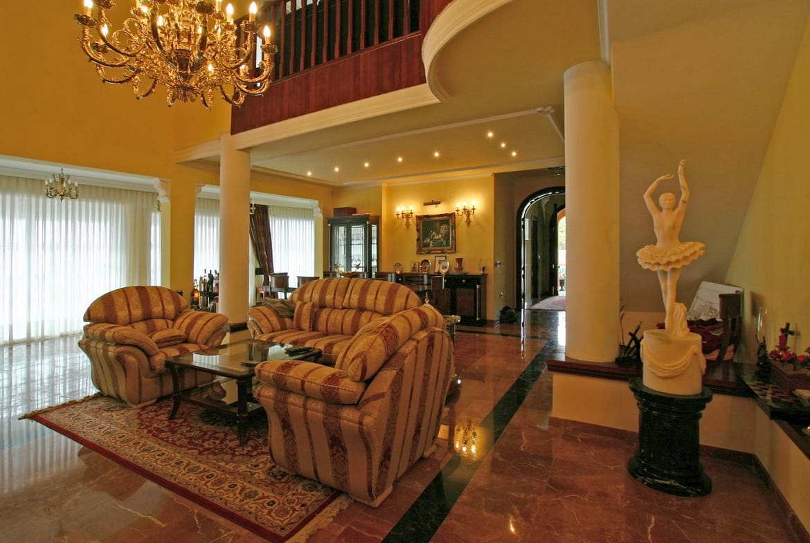 Spacious Interiors: The villa boasts expansive living areas of 537m2 adorned with traditional Andalusian architecture, featuring exposed wooden beams, terracotta tiles, and large windows that flood the spaces with natural light.