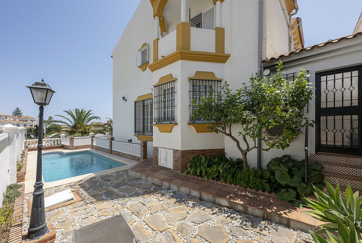Ideally located to make the most of Málaga’s coastal lifestyle, this semi-detached villa offers a rare combination of Andalusian charm and significant renovation potential. With 271 m² of built area on a 285 m² plot, the property stands out for its breathtaking sea views, multiple outdoor spaces, and an architectural proposal that showcases all the home could become. The renders created by architects provide a vision for the renovation of the kitchen, dining room, living area, and home office, helping buyers visualize how to fully unlock the potential of this residence.