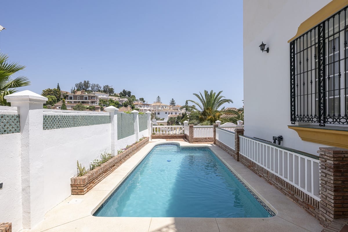 The home boasts a covered main terrace along with additional outdoor areas, inviting year-round enjoyment of Málaga’s privileged climate. Whether relaxing beside your private pool or dining al fresco, the property is designed to make outdoor living effortless. It also includes a two-car garage and generous exterior space.