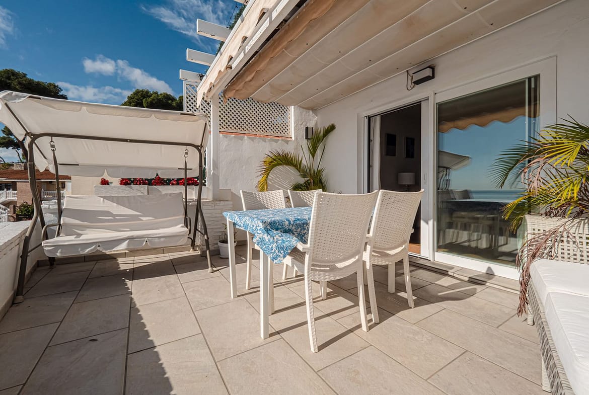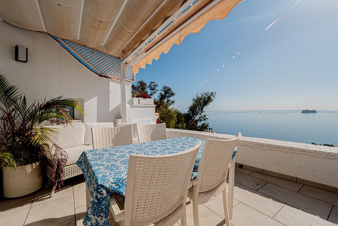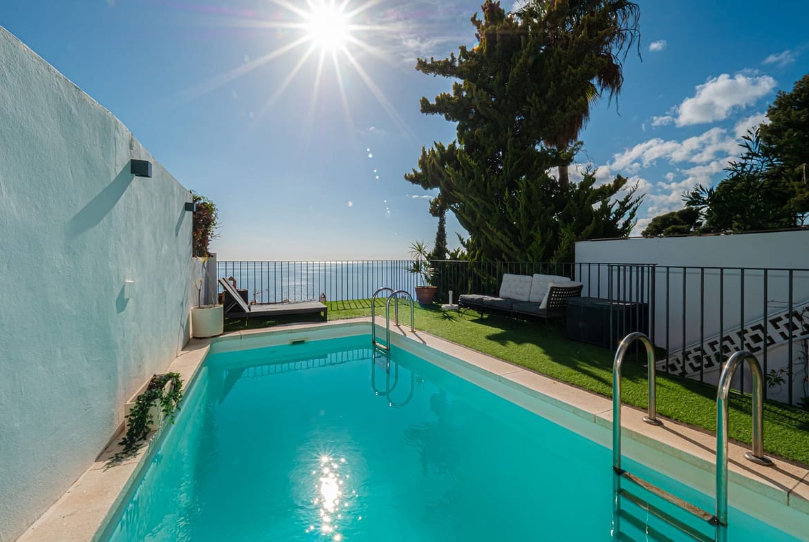 Through the courtyard we climb to the solarium terrace where you will find the private pool where the Mediterranean Sea remains the main protagonist of this property.