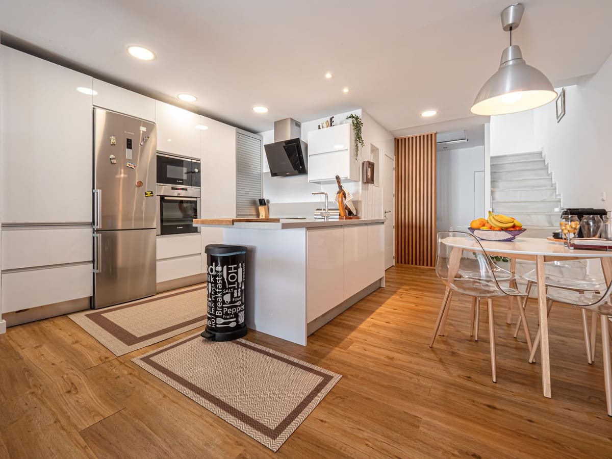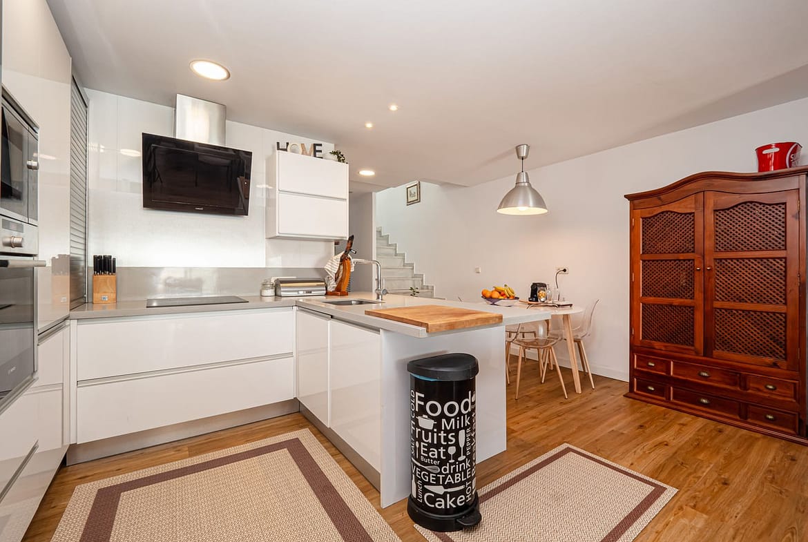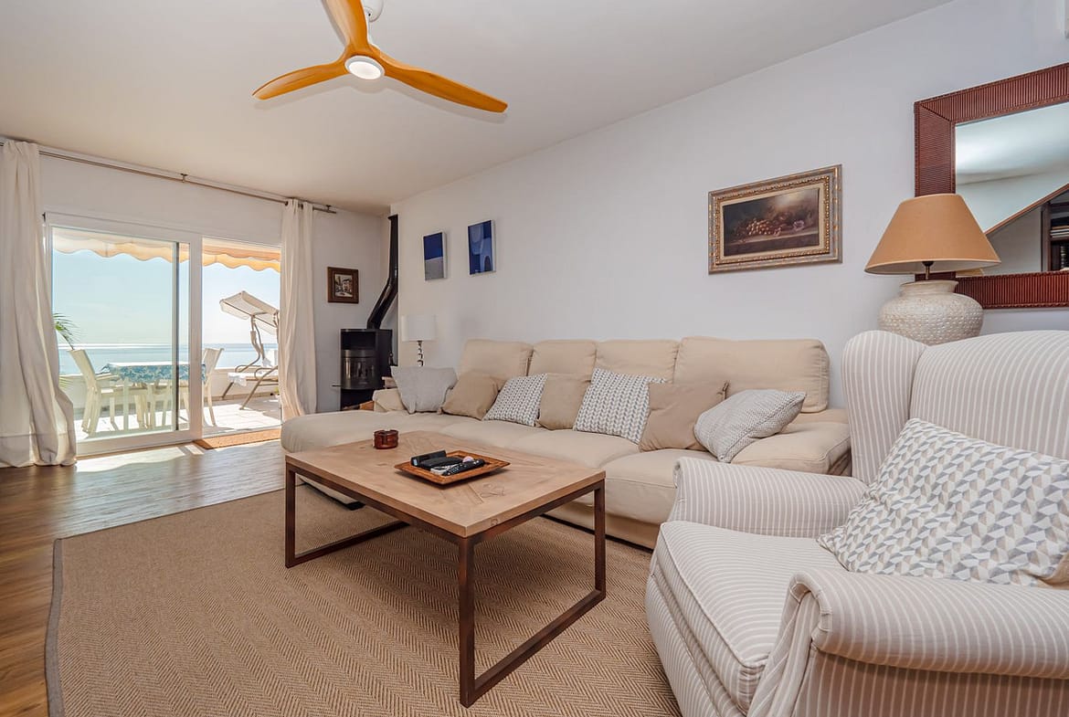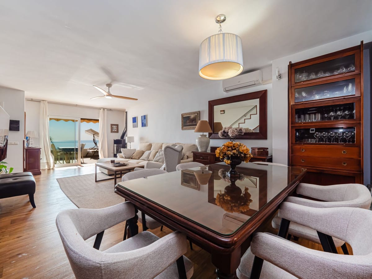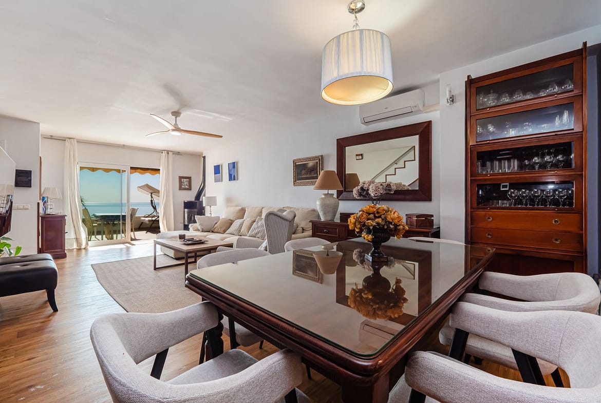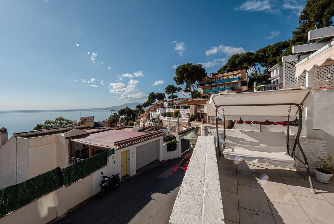Spectacular semi detached villa with stunning sea views, highlight its excellent condition as well as the qualities, the luminosity of the rooms, the sea views from the interior of the house and its private pool. The street level floor is a closed garage with capacity for a large vehicle and motorcycle, through a staircase we access the main floor where we find a large living room with dining area, a modern open kitchen, a full bathroom with shower, iron/washer area and a terrace open to the sea. The first floor is distributed in 3 bedrooms and 2 bathrooms, the master bedroom with large windows open to the sea and en suite bathroom. In the distributor of the plant we access through a spiral staircase to a cosy room also with a large front window to the sea.