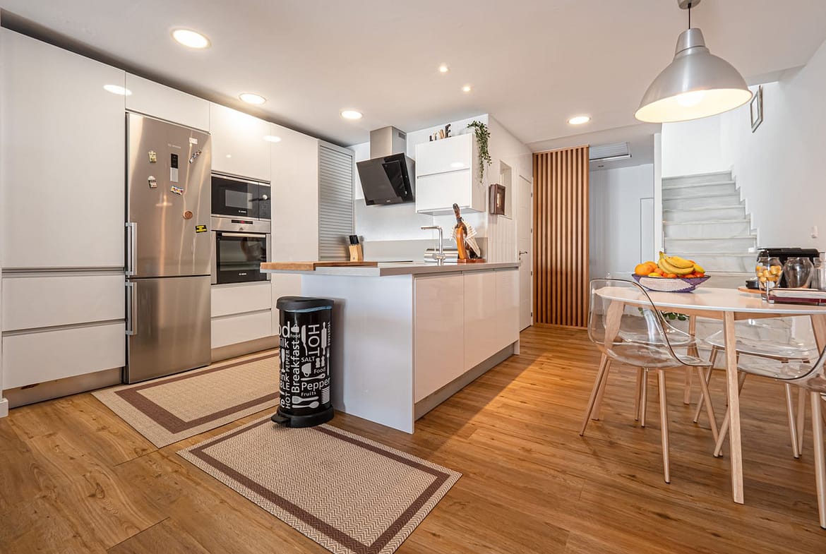 On the living room floor there is a second staircase that leads us to a nice backyard where we have a separate apartment that consists of living room bedroom and a full bathroom.