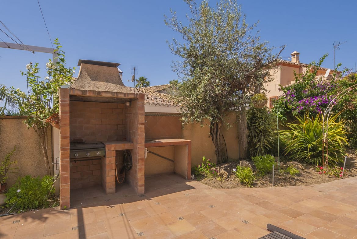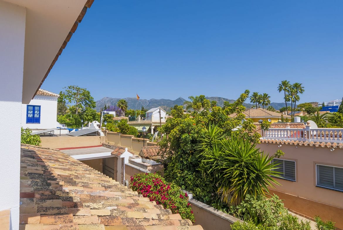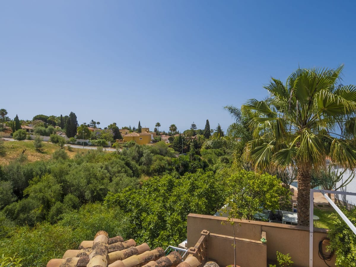 Care for Tranquility, Nature but still at 5 minute Marbella downtown? This is an independent Villa located at the outskirts of Marbella, surrounded by nature, within a small community of proprietors, and comprises five bedrooms and four bathrooms distributed along two storeys. On the ground level, the kitchen plus four rooms to be allocated at will, and a cute terrace with BBQ area. On the upper floor, an ample bedroom with dressing room and bathroom plus another terrace adding up to 15sqm. This property plot surrounds the house, with a number of fruit trees and an orchard area which could be converted in the pool area, besides, there is a wide storage room currently hosting tools. The dwelling shares a border with another property, the alley leading to the house and a small creek East of the property. An interesting choice for a quiet property for those who love Nature, environment and yet near golf and Marbella beaches.