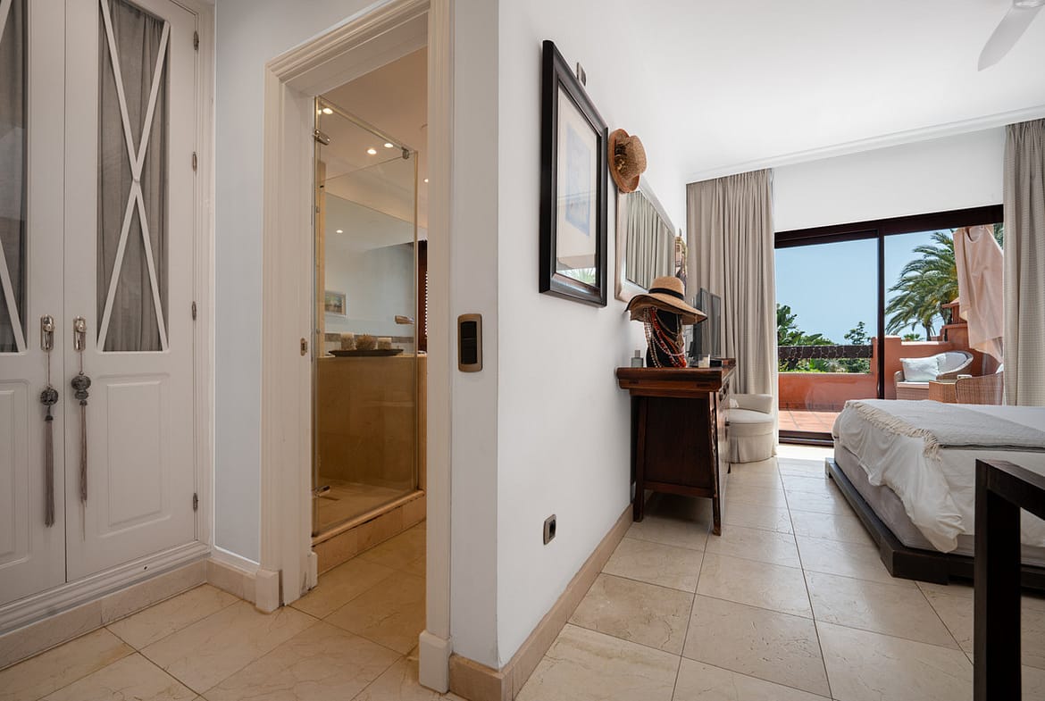 Townhouse Oasis is a five-bedroom luxury home in one of Marbella’s most prestigious gated communities on the Golden Mile. Surrounded by tropical gardens, this townhouse offers privacy, comfort, and Mediterranean charm. With multiple terraces, a private garden, and a rooftop solarium, it combines outdoor living with elegant interior spaces, making it ideal for families or buyers looking for a secure retreat close to the beach and amenities.