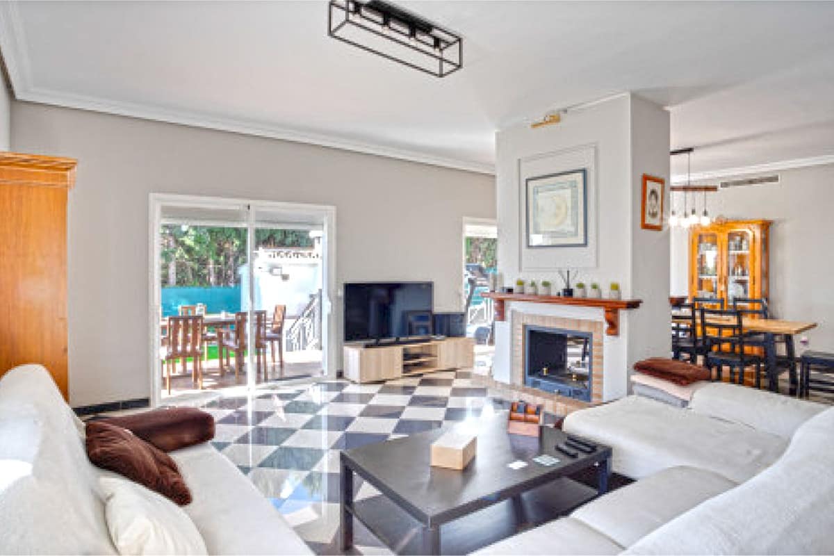 Charming villa with 5 bedrooms, 3 bathrooms and two guest toilets, located just steps from the Club Mediterraneo in Marbella. Southeast facing. This home combines elegance and comfort, with spacious rooms offering natural light and breathtaking views. Plot of 1.000m2.