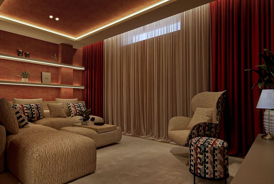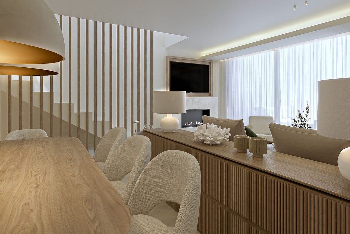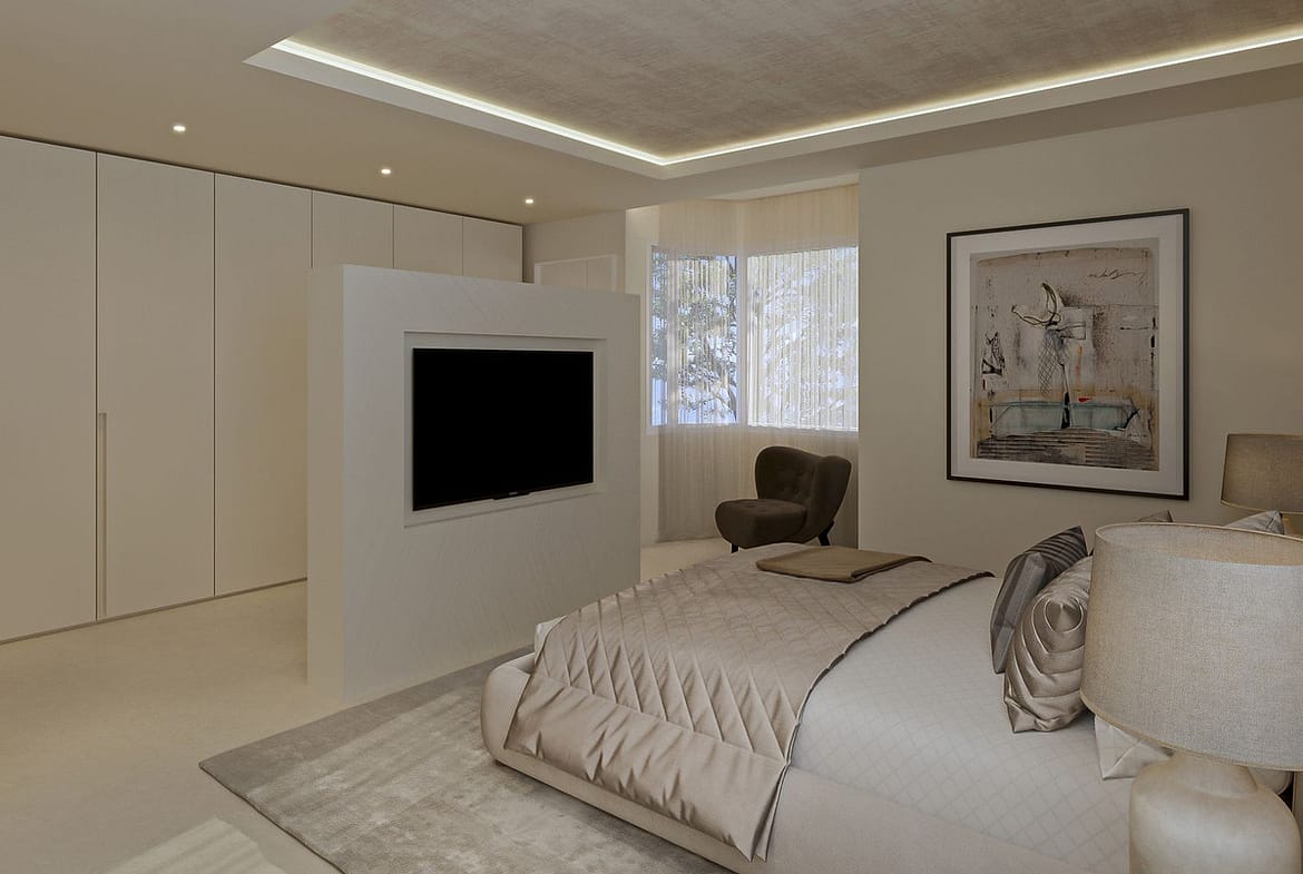 The home has been completely refurbished to an uncompromising standard, featuring a bespoke open-plan Santos kitchen, a custom outdoor kitchen and a dedicated wine cellar. The interiors are fully furnished with custom-made furniture throughout, including lacquered fitted wardrobes with integrated LED lighting, as well as beds with built-in storage and premium 35 cm mattresses with toppers.