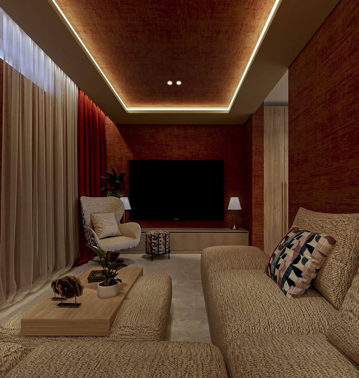 One bedroom is currently configured as an intimate cinema and games room with a large-screen TV, sound system and ambient LED lighting, and can easily be converted back into a full fifth en-suite bedroom. Lighting has been carefully designed, with most ceiling and ambient lighting installed on dimmer systems to create flexible atmospheres throughout the home.