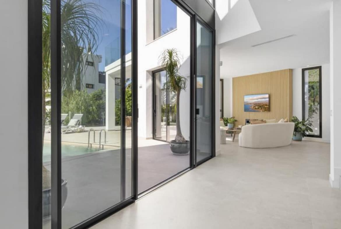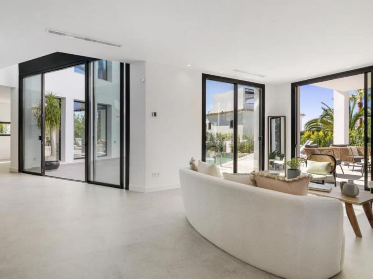 The property, located just a few meters from the beach and the local restaurants, features 5 double bedrooms with built-in wardrobes, 5 bathrooms, 1 guest toilet, a spacious living-dining room with a fireplace and direct access to the pool area, a fully equipped open-plan kitchen, air conditioning throughout, and tiled floors.