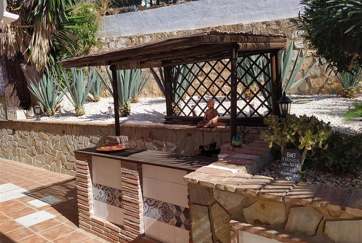 A large villa in a quiet cul de sac in the Urbanisation of Campo Mijas with a large walled and gated garden with ample parking space for 3 or 4 cars . The property is entered via a gated entrance way to the large parking area with easy access to the house. On the upper ground floor there is a pool, barbecue and a sun terrace leading to the entrance hallway, a large open plan living/dining room, second lounge with a fireplace, master bedroom with large shower room, second bedroom with ensuite, large kitchen with separate office/dining area with access to another large sun terrace. The living room also has direct access to themain covered and open terrace, barbecue , bar and pool with open panoramic south west views over the valley . The lower floor is reached via a staircase and has two further bedrooms with access to the lower terrace ,a conservatory, a large shower room and further bedroom with ensuite shower room which has its own private terrace adjacent to the main pedestration entrance . There are ample landscaped gardens for easy maintenance and behind the house there is a large wooden chalet currently used for storage. The property is in a great location and is within easy access to all the amenities of El Coto. There are open panoramic views from the front terraces and pool area, the house is fully air conditioned and will be sold part furnished. The property has an extra bonus of an elevator . solar panels and is suitable for the disabled and eldery as well as a great family or holiday home.