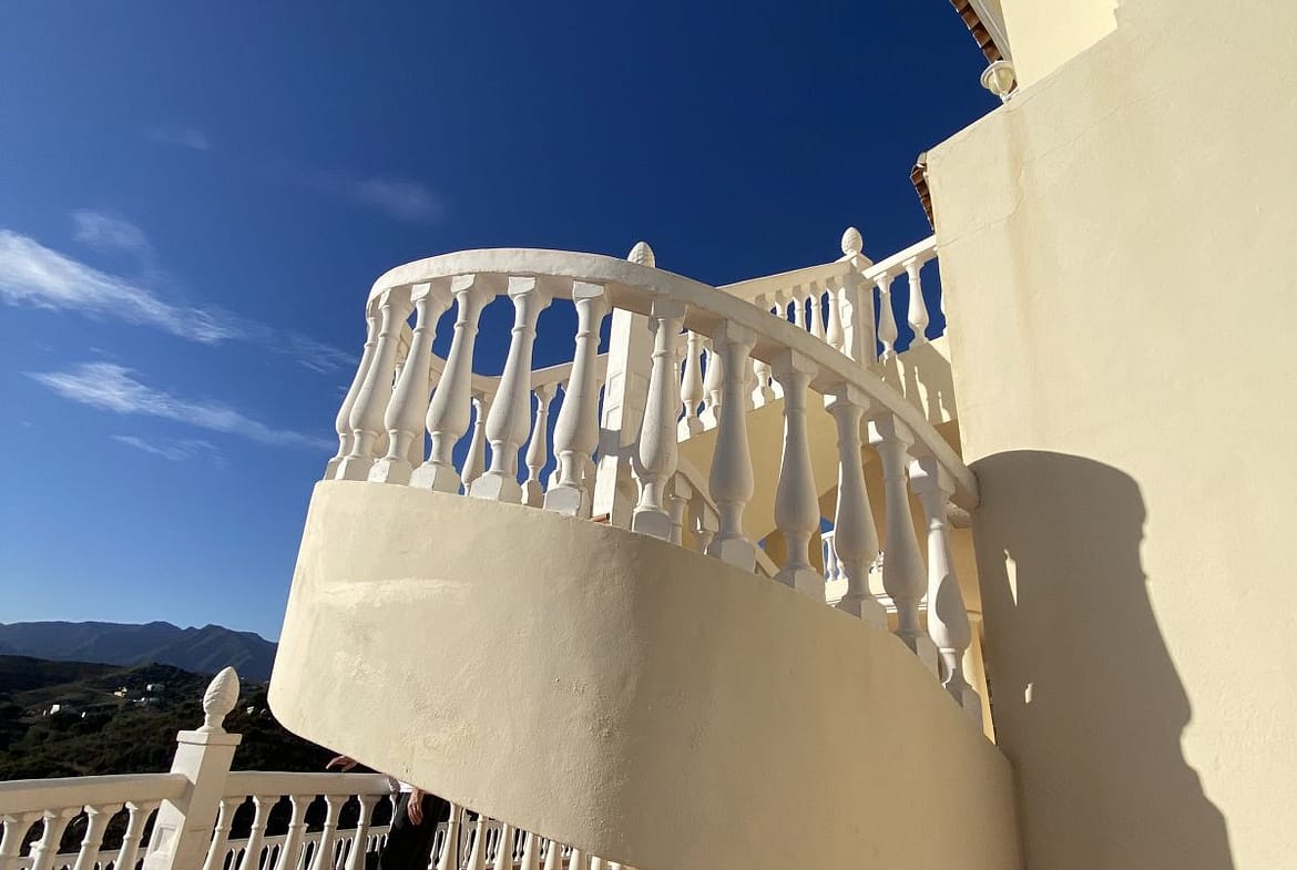 Of course most of your time will be spent outside soaking up the Spanish sunshine on one of the many terraces. The pool has Roman steps to for ease of access easy. There is a lovely covered terraced area adjacent to the pool that is perfect for dinning. The villa also has a grassed area with some fruit trees and well hidden solar panels.