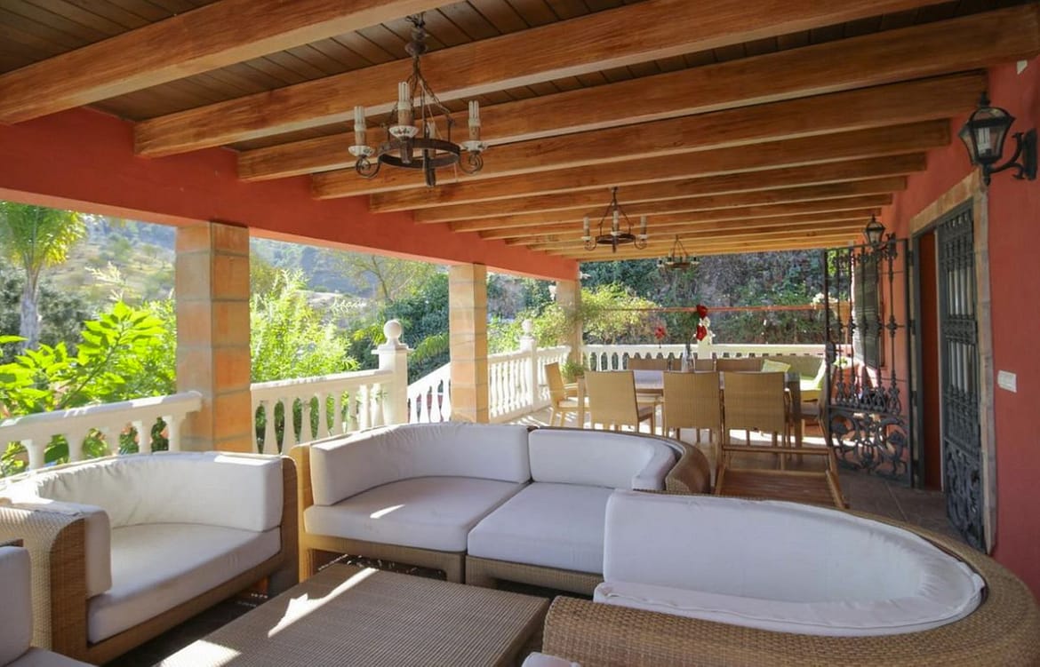 Opportunity at Bargain price! Lovely country house set between the picturesque Andalusian villages of Monda and Guaro, just a few kilometres away from Marbella, with stunning views over the countryside and the beautiful mountains of the Sierra de Las Nieves. A gated entrance drive leads up to the main house, the guest apartment and to a large patio with tropical roof, summer kitchen with bar and barbecue. The property comprises on the ground floor an entrance hall, a master suite, a spacious kitchen opening onto a spacious living/dining room with fireplace with direct access to the large terrace and the pool area. Downstairs, there are 4 more spacious bedrooms, a bathroom and with a spacious lounge with fireplace.