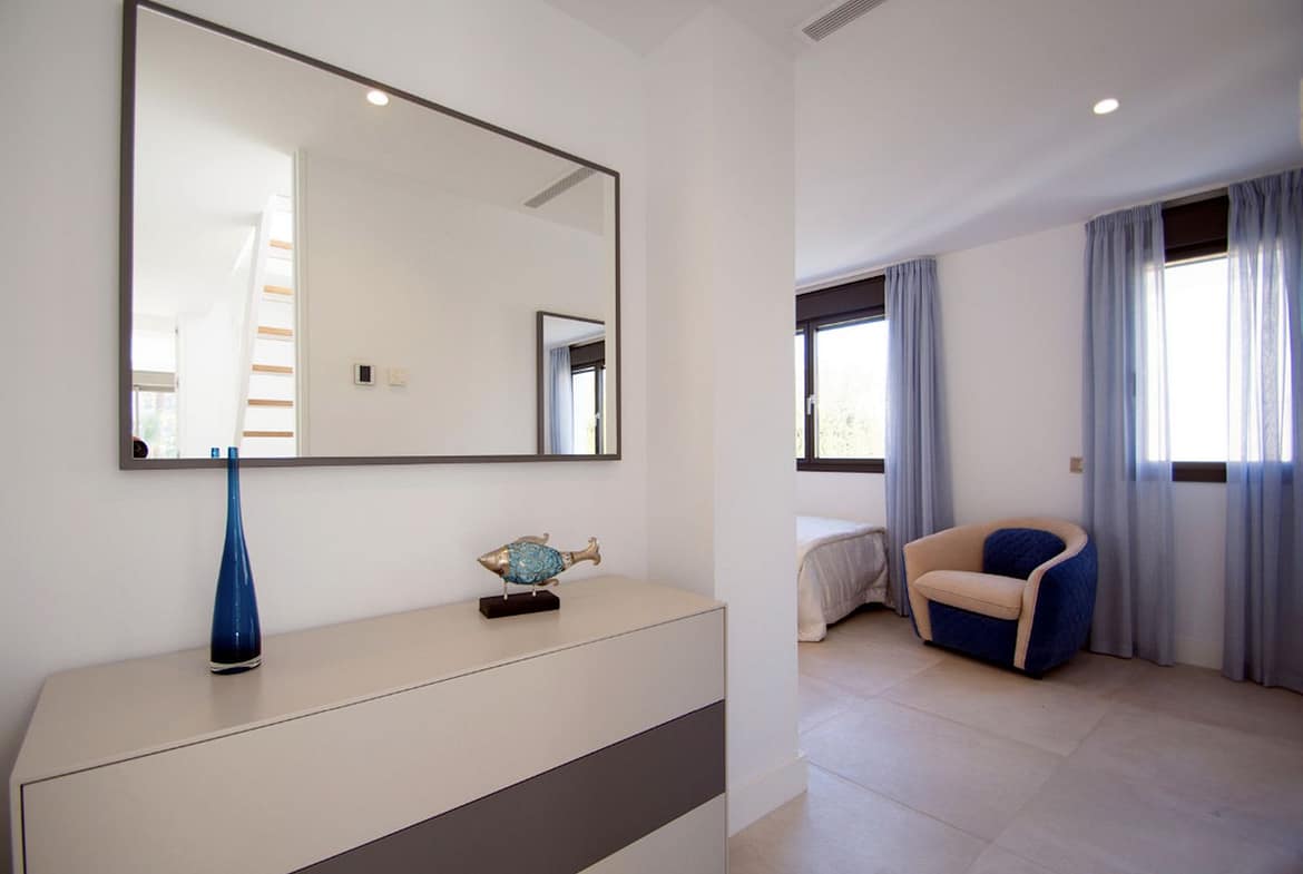 Exclusive villa located in the heart of Nueva Andalucia, renovated with luxury qualities. Privileged location, a short distance from Puerto Banus and the most prestigious golf courses, international schools, sports facilities and services. The house consists of 4 plus 1 bedrooms and 5 bathrooms. Upper floor with great views of the La Concha mountain and residential area, with a large solarium terrace. Open and minimalist spaces abound, along with high security measures, in addition to a beautiful lake with direct access from the garden, and a spacious private pool area, where you can enjoy the tranquility that the area offers.