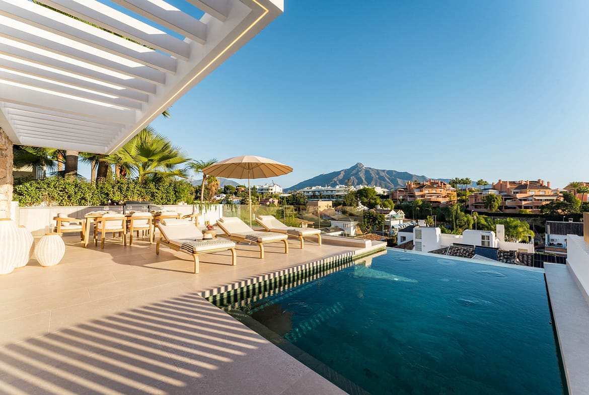 Villa Tulua is READY TO VISIT! It is Design-led luxury villa for sale in the dream location of Nueva Andalucía, positioned on an elevated ridge that offers unrivalled panoramic views. From the iconic La Concha mountain in the east to Gibraltar and breathtaking sunsets in the west, this fully renovated three-storey residence enjoys what may be the most spectacular outlooks in the area.