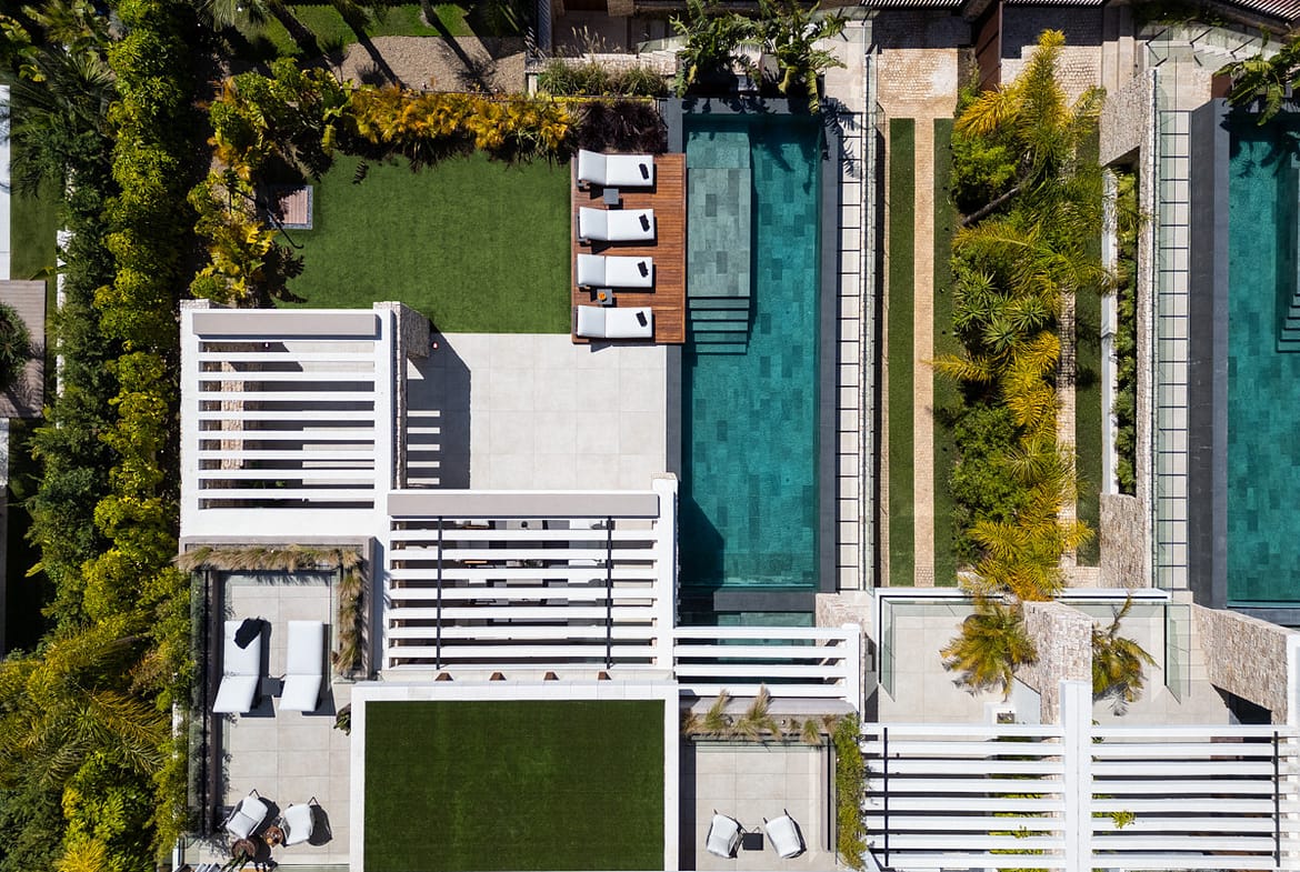 The villa’s sleeping quarters are designed with impeccable taste. The master suite, a true retreat, offers direct access to a private terrace where one can savor the expansive views. The en-suite bathroom is a sanctuary of indulgence, featuring a freestanding tub with a view and a walk-in shower adorned with premium fixtures. Additional bedrooms are equally refined, each with en-suite facilities and private terraces, ensuring that guests enjoy unparalleled comfort and privacy.