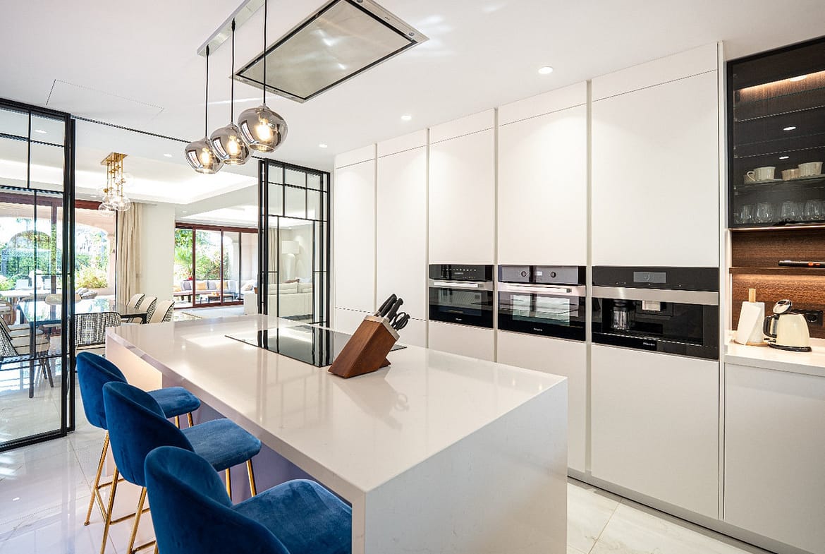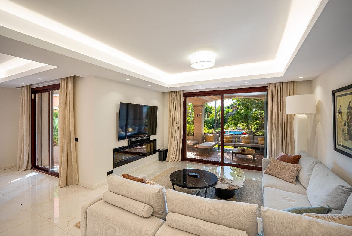 Enjoy outdoor living on the generous terraces surrounded by landscaped gardens. With its private pool, alarm system and recessed lighting, this home blends luxury with peace of mind. This is a move-in ready home in one of Marbella’s most desirable locations — perfect for buyers seeking refined coastal living.