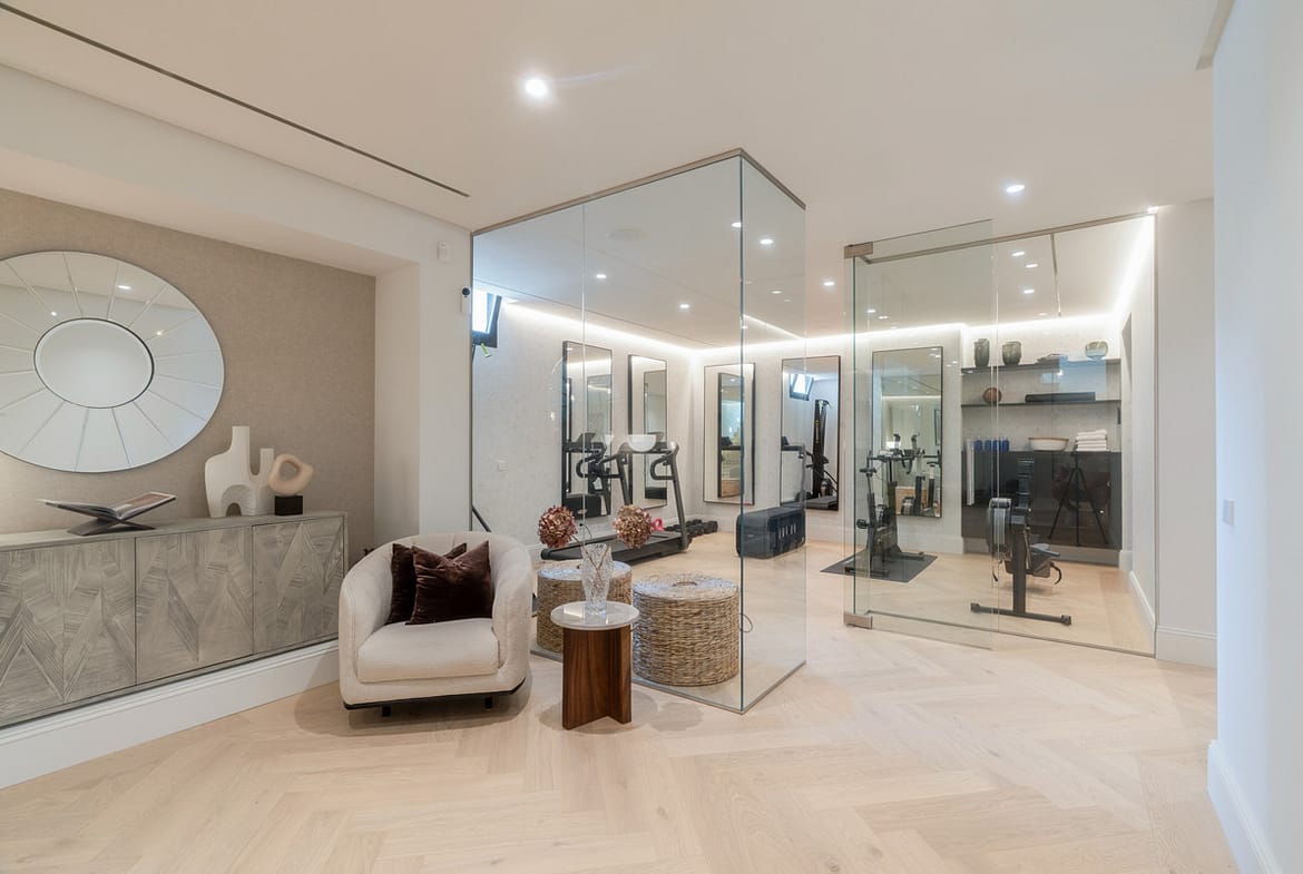 A standout feature of this home is its fully fitted luxury basement, offering a private retreat for wellness and entertainment. This level includes a state-of-the-art home cinema, professionally equipped gym, steam bath, and an elegant bar and lounge area, designed for relaxation, recreation, and hosting in style.