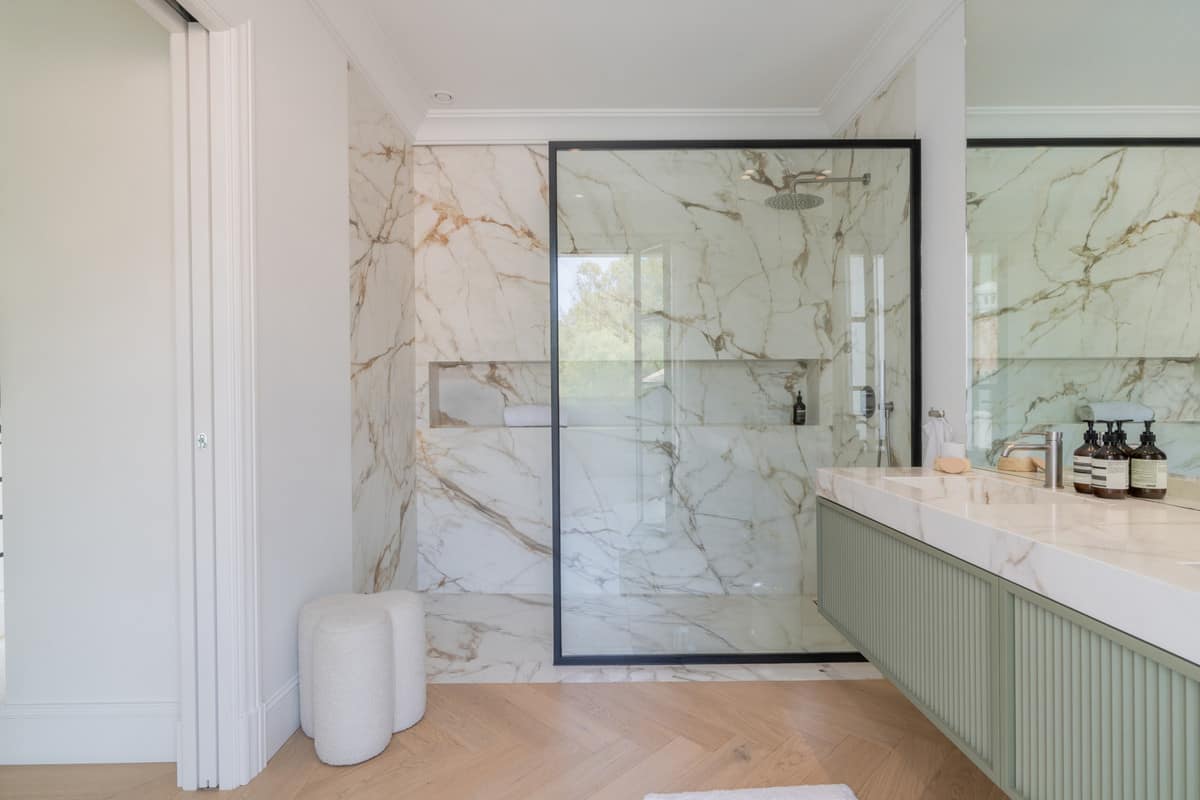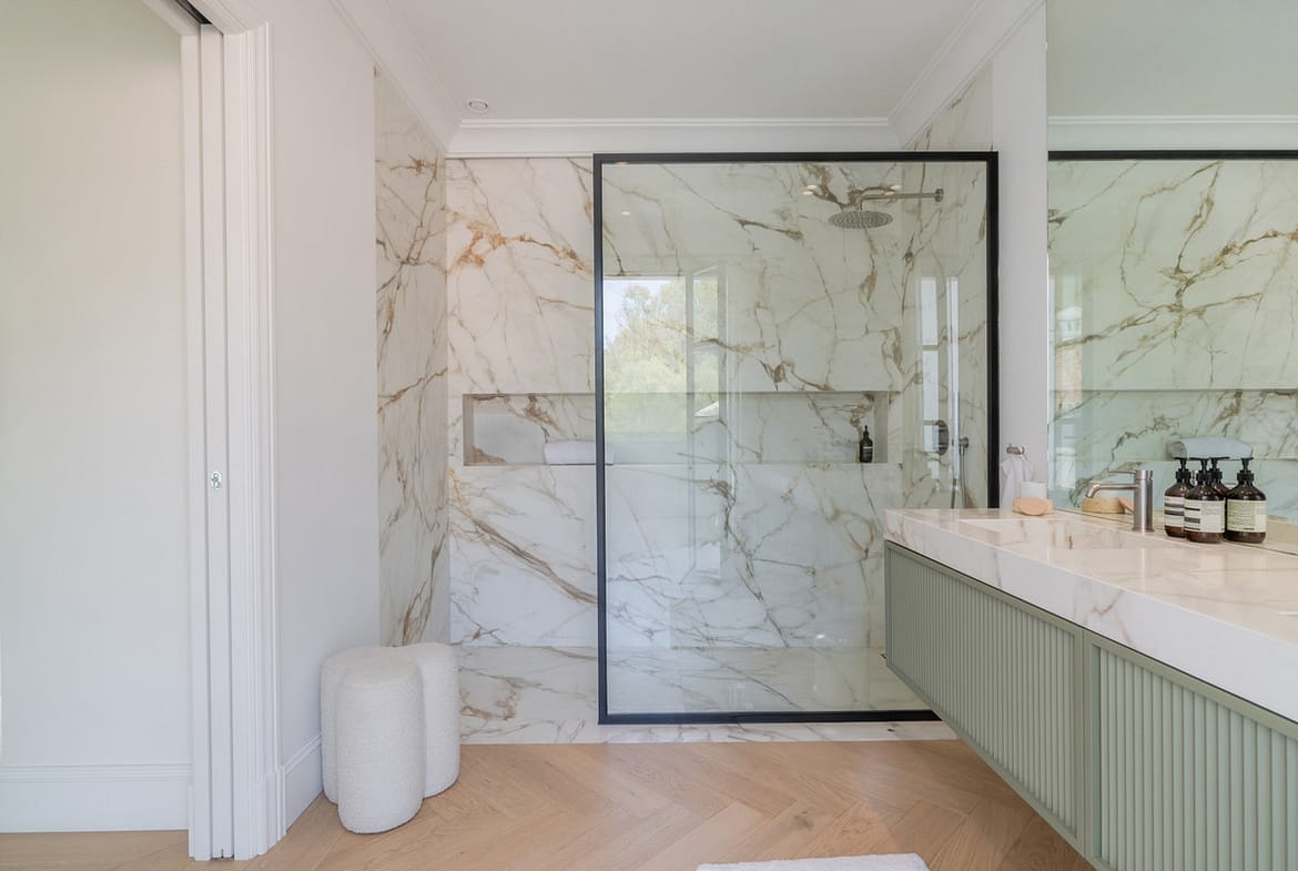 Crafted to the highest standards, Villa Provence features five spacious en-suite bedrooms, each designed with natural materials, soft textures, and custom finishes that reflect a commitment to quality and detail. The open-plan living spaces are bathed in natural light, with large windows and seamless transitions to the outdoor terraces, landscaped gardens, and inviting pool area.