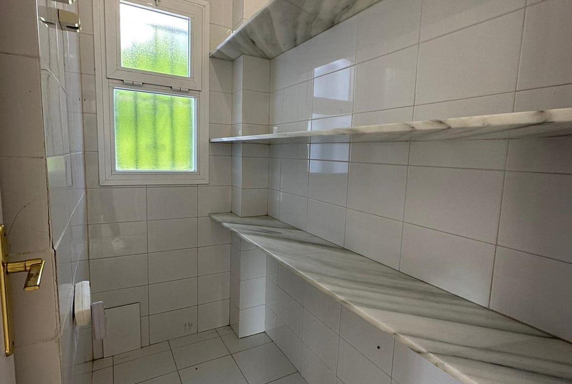 The fully fitted kitchen is spacious and has an adjacent pantry, 2 large windows, plus access to the garden. On this level, you will also find a guest bedroom with an en-suite bathroom, in addition to a guest toilet.
