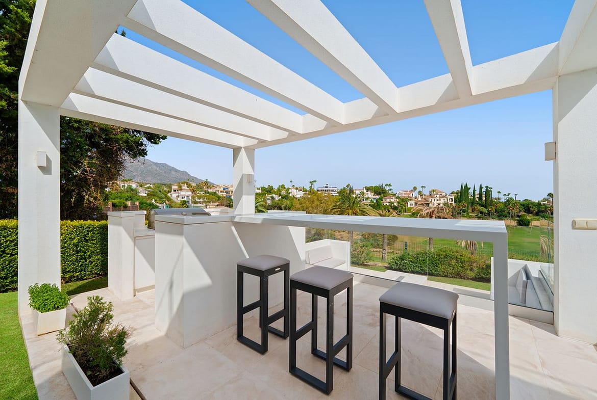 Outdoors, lush landscaping frames the infinity-edge pool, complete with a sunken lounge, outdoor kitchen, and multiple chill-out zones. With a private garage, state-of-the-art home automation, and optional furniture package, this villa is a turnkey luxury residence in one of Marbella's most prestigious and sought-after locations.