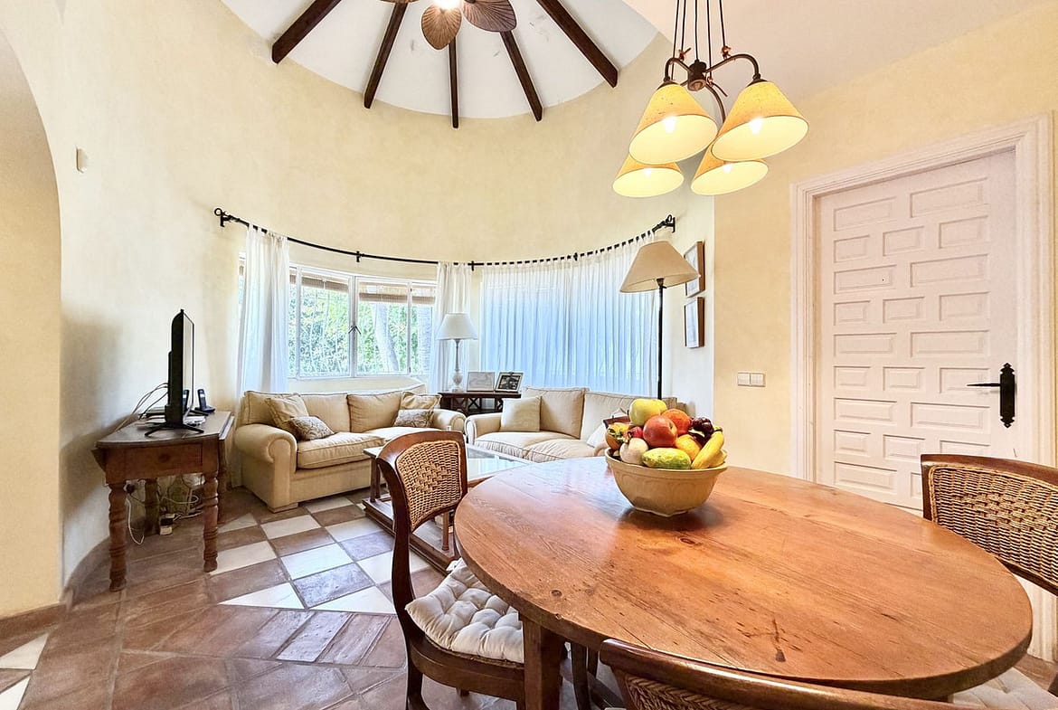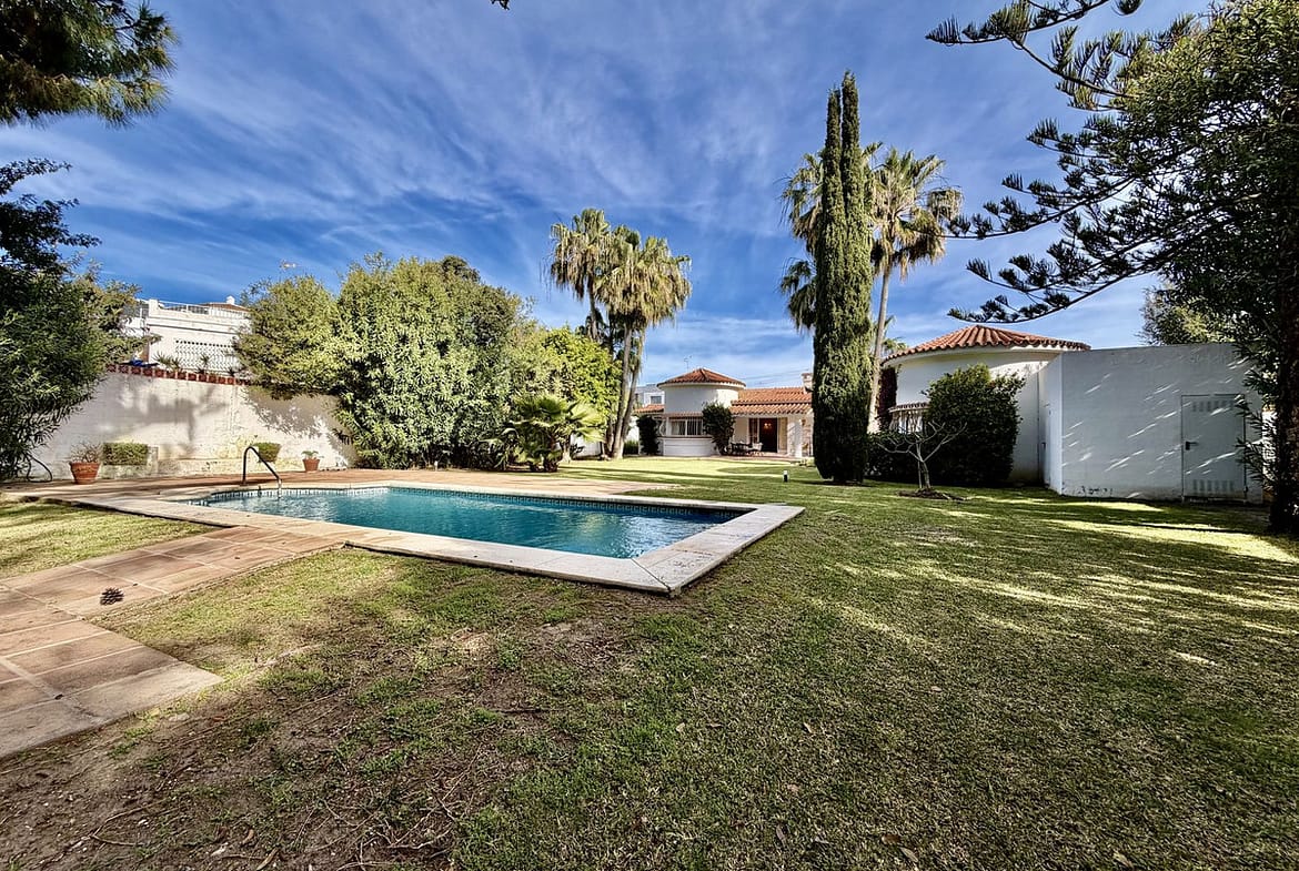 Fantastic villa with enormous potential, located just steps from the beach in a quiet area of San Pedro de Alcántara, where the sound of the sea accompanies daily life. This property, with its character, while needing renovation, offers an excellent foundation for creating a personalized home in a privileged setting.