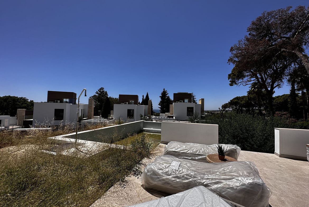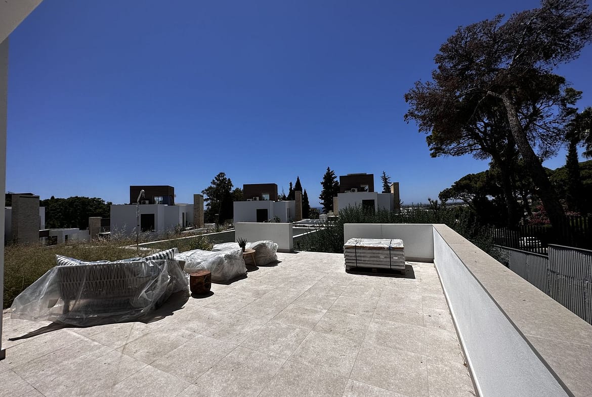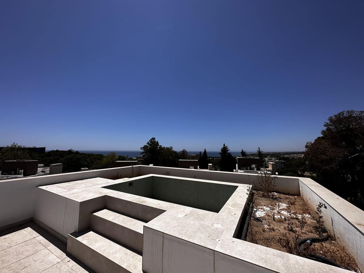 With a plot of 1000m2, a total living area of 730m2, large terrace of 225m2 and includes 5 bedrooms and 5 bathrooms, a spacious living room, an open plan kitchen equipped with the highest quality furniture and appliances, a private lift connecting each level of the property, cinema, sauna and hammam, under floor heating, a rooftop solarium with beautiful views towards the sea and private garage for 2 cars + 2 parking spaces.